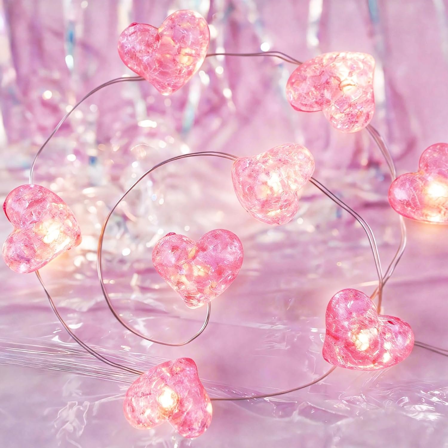 【Mini Pink Heart String Lights】: Our pink battery-operated fairy lights are 10.5 feet long with 30 mini pink heart-shaped LEDs, you can just DIY to create a wonderful Valentine’s decorations. The 3D Pink Heart Fairy Lights with diamond cut design allows the heart-shaped led to flash in all directions, create a mesmerizing sparkle and add a delicate and sweet romantic touch.