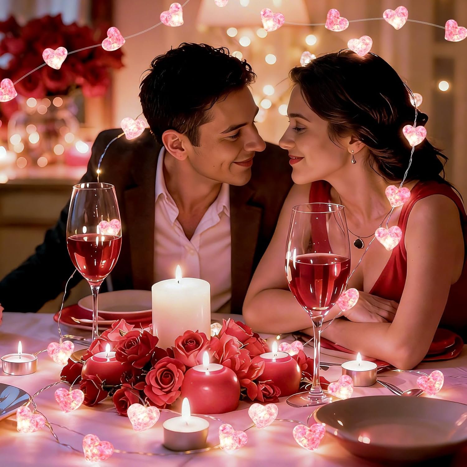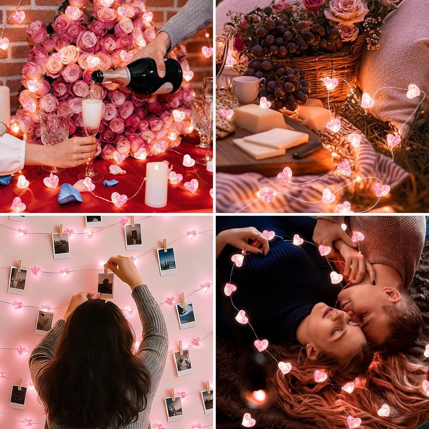 【Wide Application】: Our Valentines Battery Fairy Lights are easy to shape and wrap around various objects, and create a warm, happy, romantic atmosphere. Perfect for Valentines tree, Christmas tree, photo walls, wine bottle, furniture, plants, windows, curtains, , home, bedroom, party, windows, curtains, walls, doors, yard and so on, to bring sweetness and happiness to you and your loved ones.