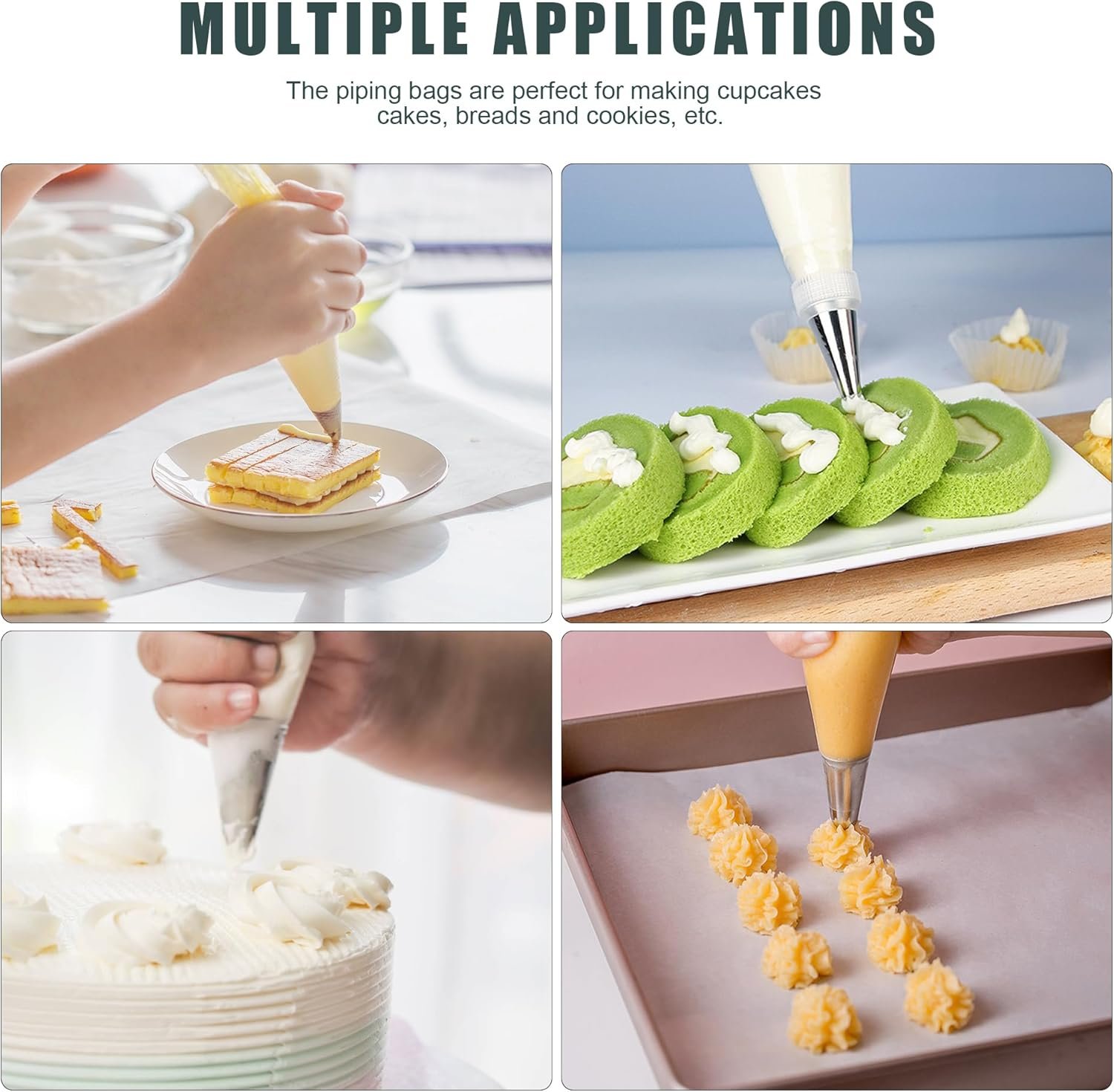 Anti Burst & Anti-slip: The set includes 100 sturdy and durable 12 inch disposable pastry bags, which can be flexibly used to create various shapes and designs without worrying about bag breakage.
