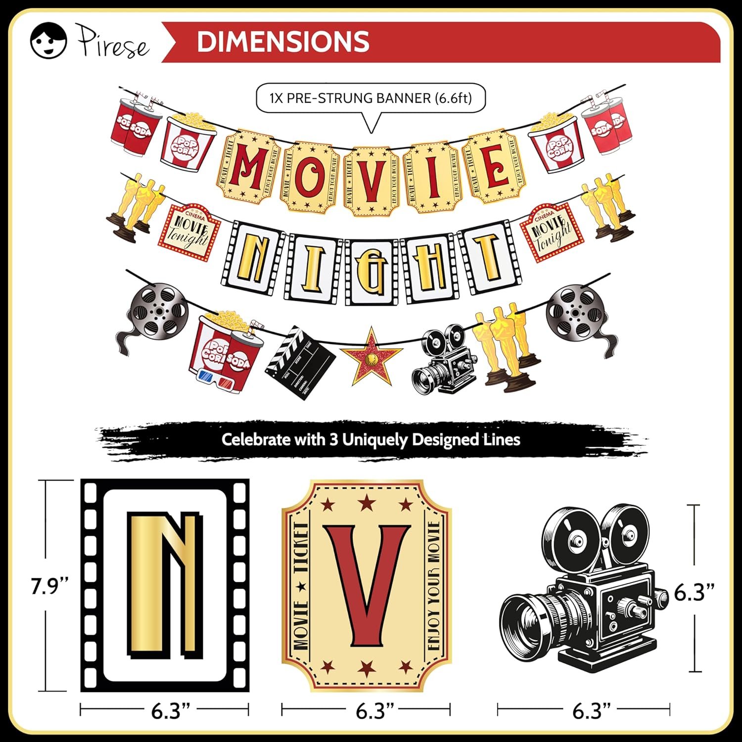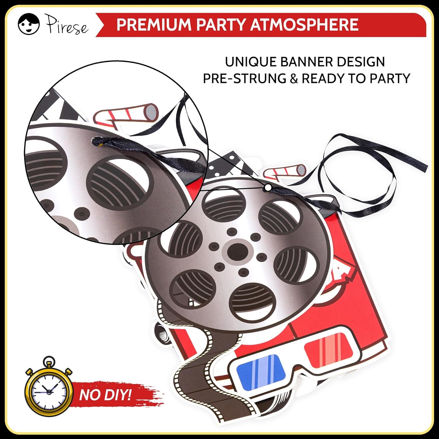 SET THE SCENE IN SECONDS: With our pre-strung movie themed decorations banner, you can skip the hassle and jump straight to the fun. Quick setup means more time to pop the popcorn party and press play!