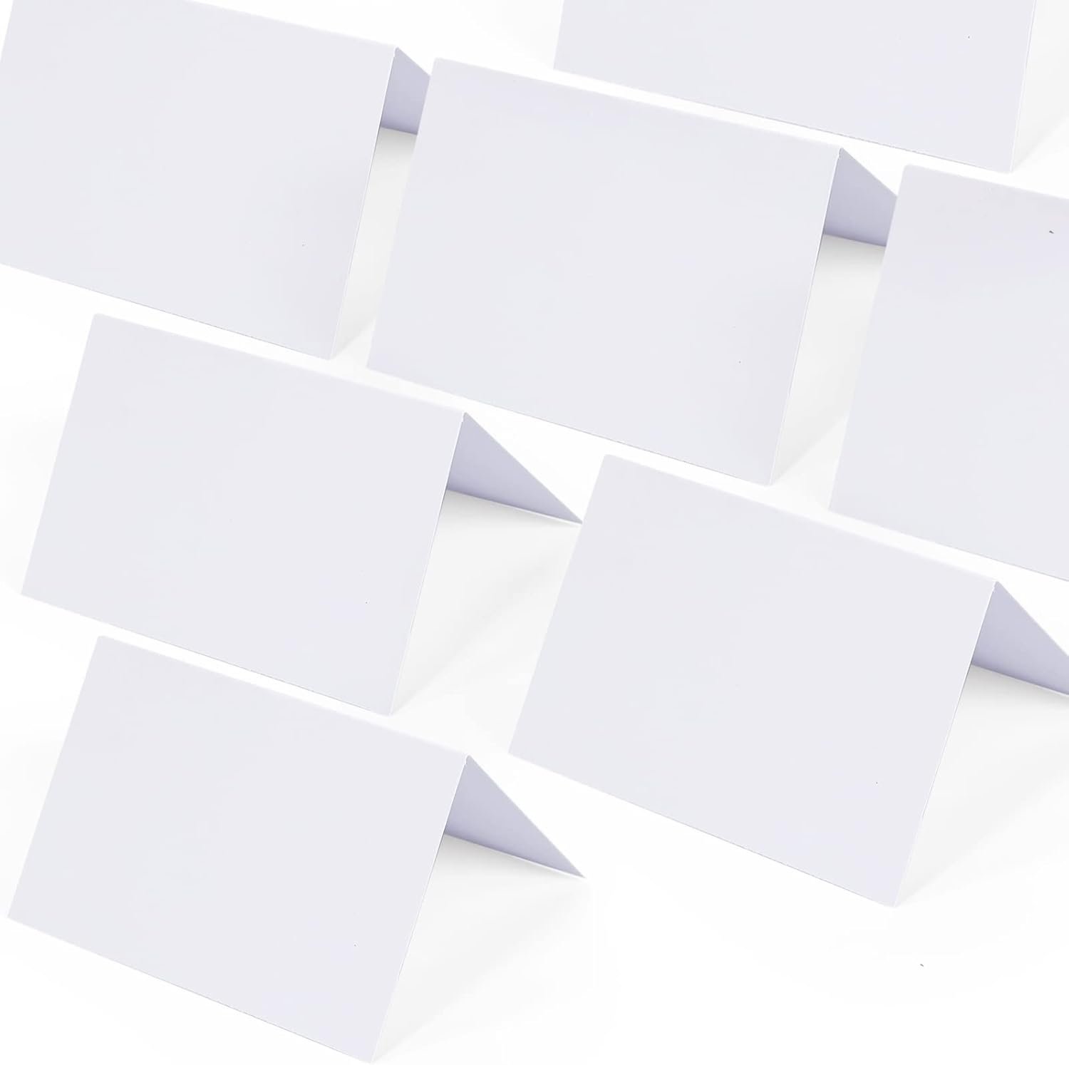 Package includes 50 Pcs wedding place cards. The table name cards are made of 300 gsm extra thick paper. When tended, tent cards are sturdy with highly quality, not easy fall down. Specially, they are blank white cards