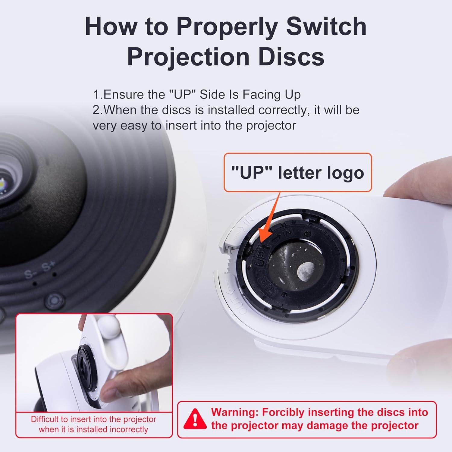 【13 IN 1 Nebula Projector】 – Star projector galaxy light comes with 13 display scenarios: Solar System, Earth, Moon, Virgo Supercluster, Centaurus A, Black Hole, Antennae Galaxies, Wormhole, the Milky Way, Mystic Mountain, Sharpless 2-308, Small Magellanic Cloud, and Laniakea Supercluster. Each projection card has an introduction to the galaxy, helping you know more about space. PLEASE MAKE SURE the “UP” letter faces upwards when installing. Note: 13 projection cards total, 1 pre-installed in the projector