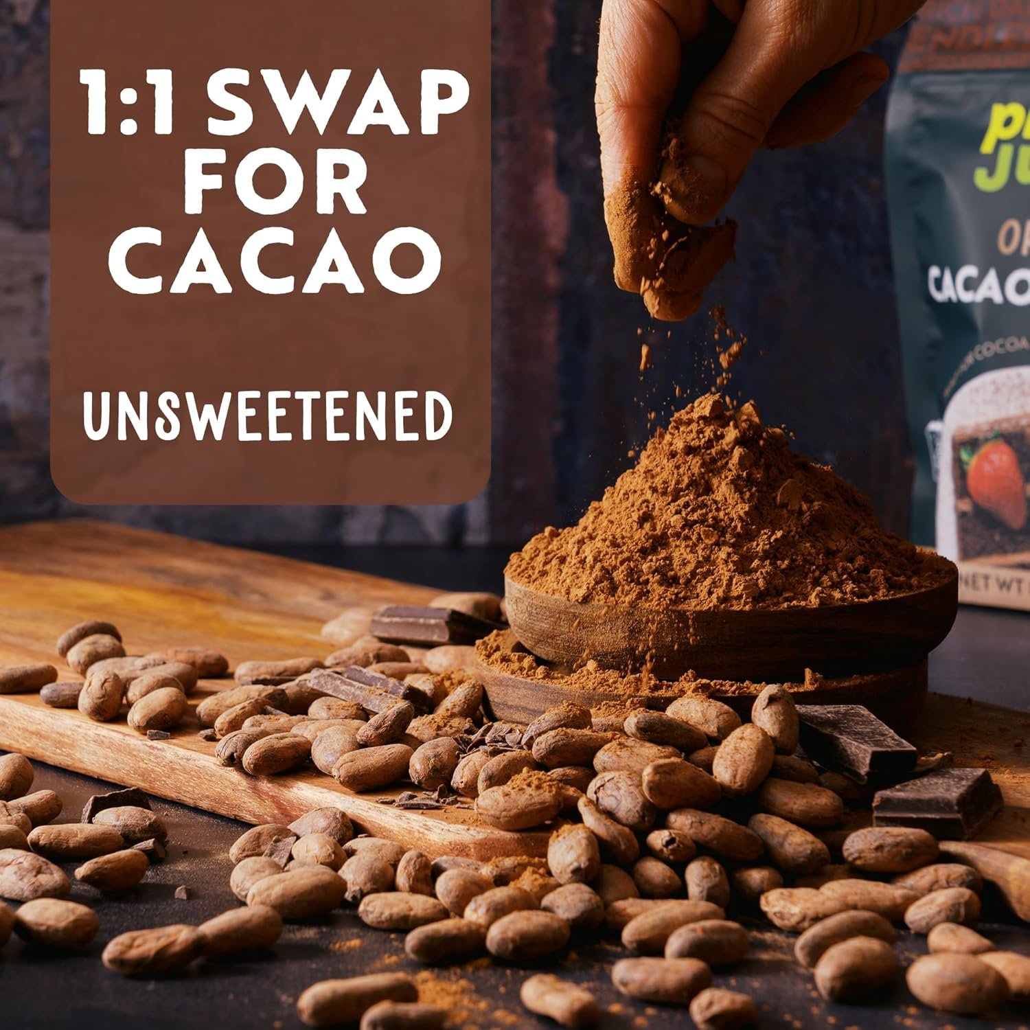 KISS COCOA GOODBYE: Make the switch to our organic cacao powder with a simple 1:1 swap for unsweetened cocoa. It delivers a rich chocolate flavor with no bitterness and no artificial additives—just the bold taste of real cacao to elevate your favorite recipes