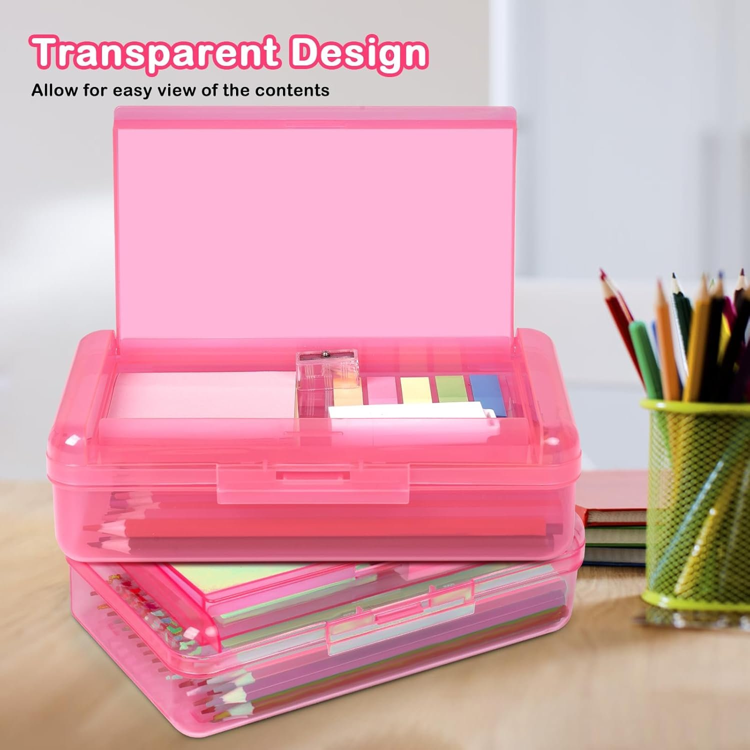 Colored Pencil Case: The colored plastic pencil case is transparent, which can clearly show the contents and facilitate storage management. Fashionable appearance and a variety of colors for you to choose, there will always be one you like.