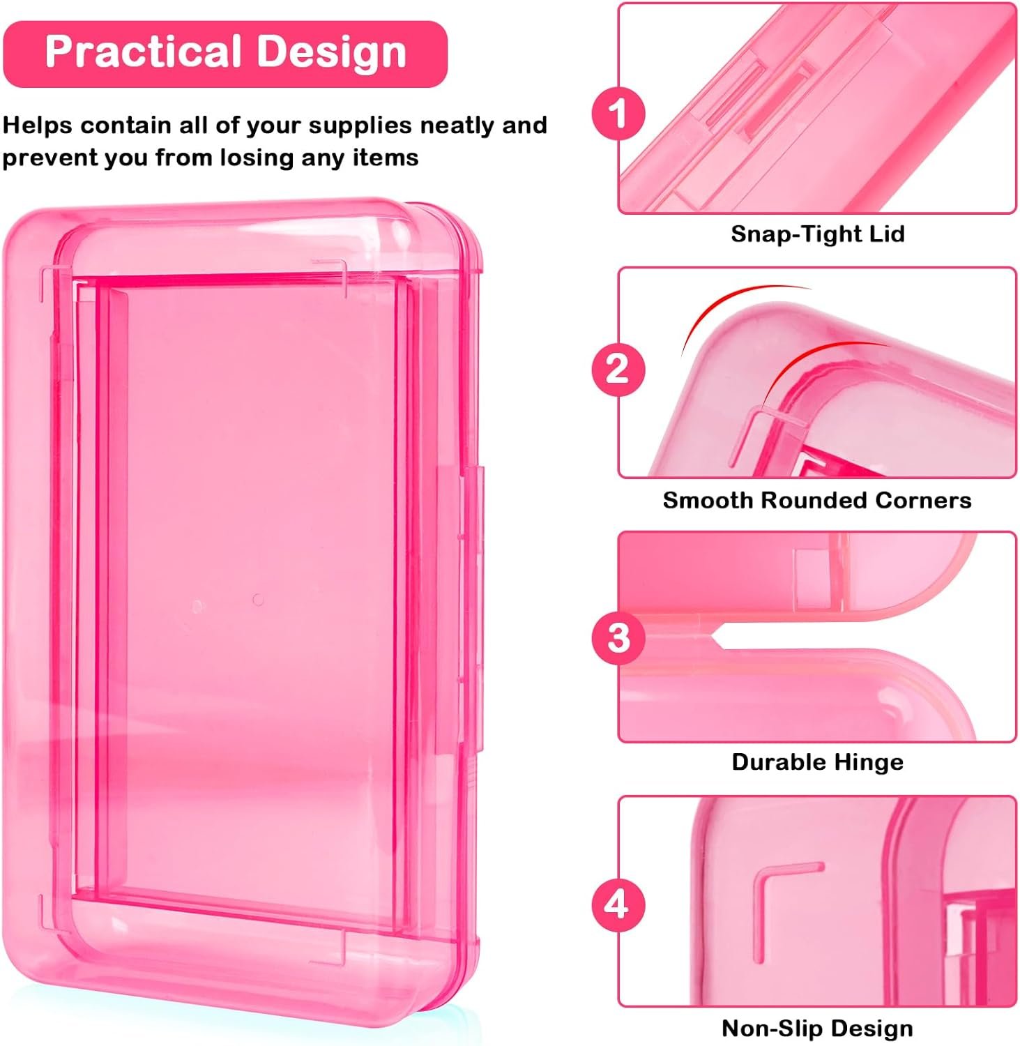 Hard Pencil Case: The plastic pencil box is made of durable PP plastic and has a lockable cover. Strong structure, with a certain load-bearing capacity, ideal for storing school or office supplies and other small items, can help you avoid disorderly desk.