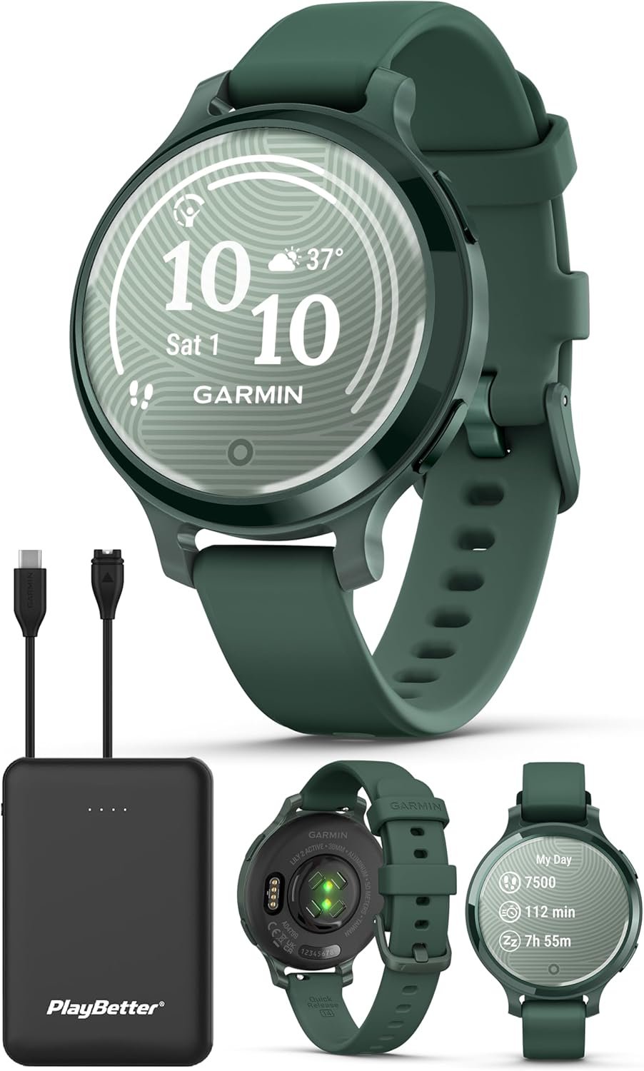 Ultimate Fitness Bundle Box + 1-Year Warranty: Garmin Lily 2 Active Women’s Fitness Smartwatch, PlayBetter Z05 Portable 5000mAh Charger, and Charging/Data Cable | Device is 100% covered by Garmin’s 1-Year Warranty