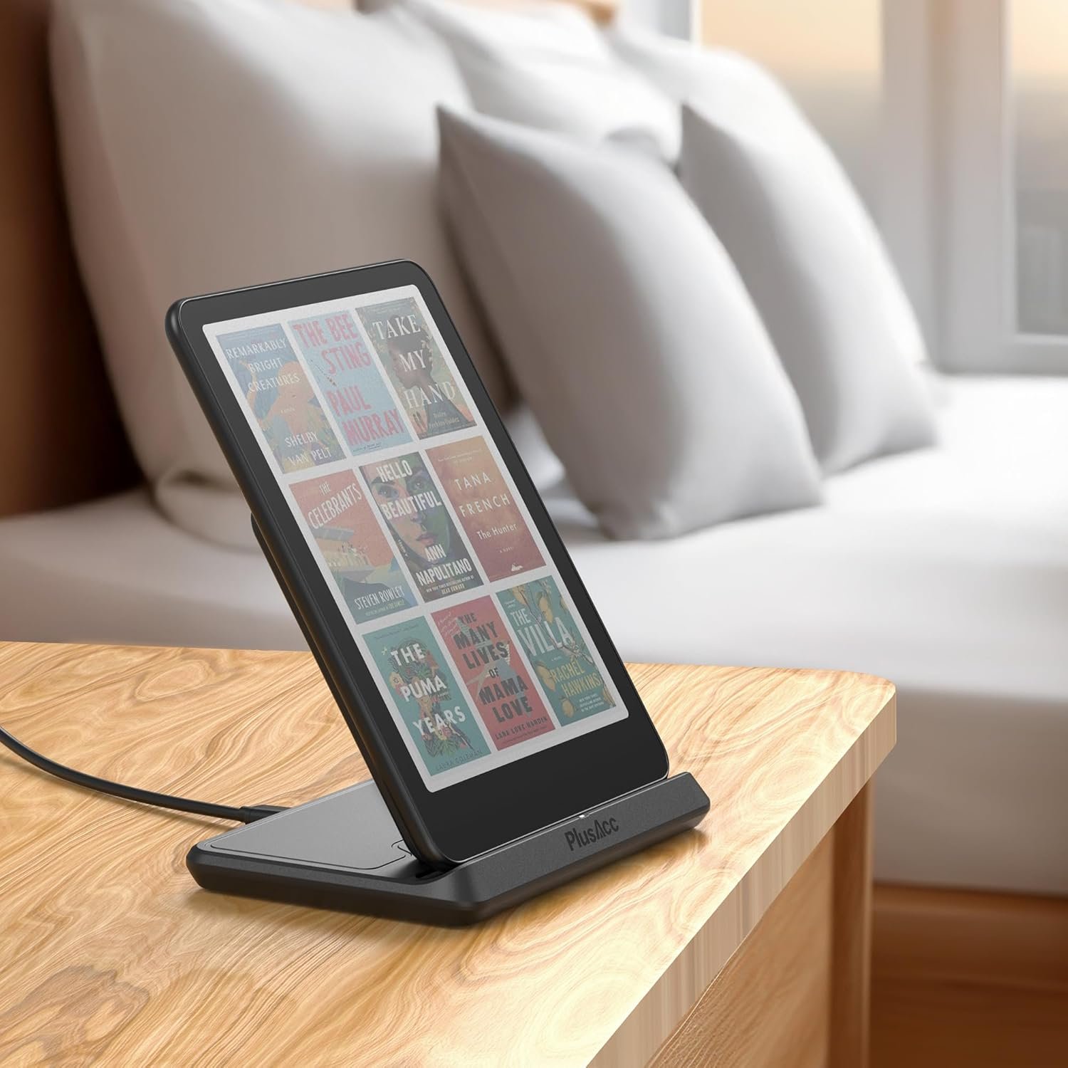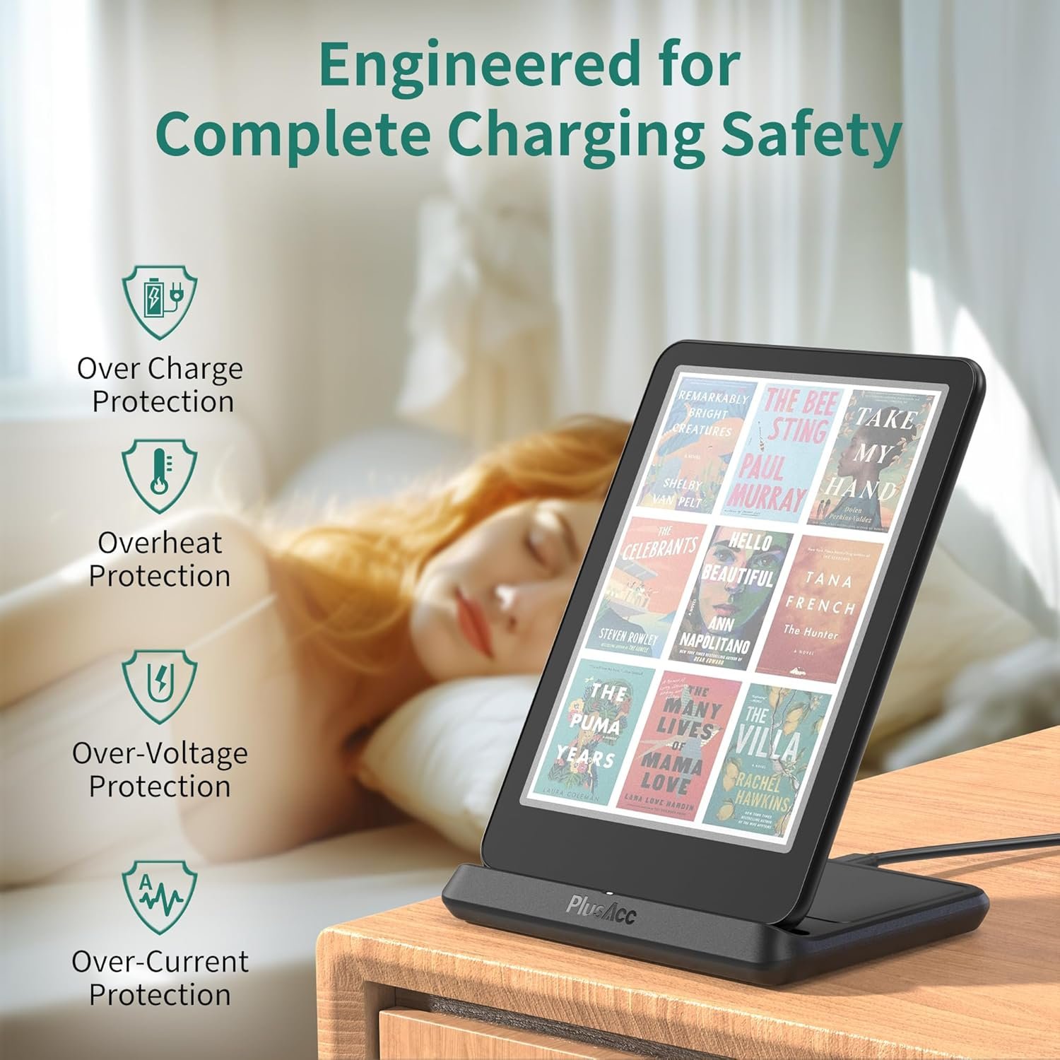 Multi-scenario Usage: When you are reading by the bedside, simply place the device on the bed to charge it. When you are at the desk, this wireless charger allows you to read while charging, with a 60° angle for a comfortable experience.