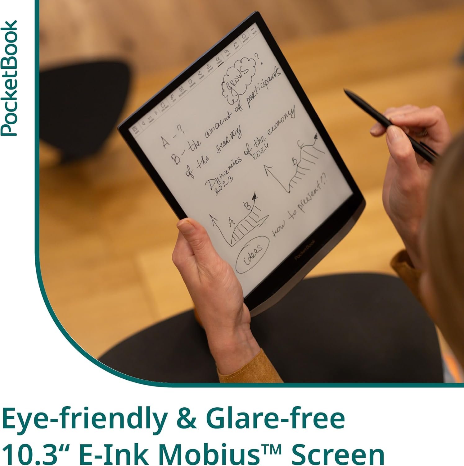 LARGE, GLARE-FREE & EYE-FRIENDLY SCREEN: Enjoy unprecedented e-reading comfort on the 10.3-inch E-Ink Mobius display, featuring a crisp resolution of 1404 x 1872 and 227 PPI. This eye-safe screen is ideal for all types of content. Effortlessly customize the text size to your preference, with ample space for text even at larger font sizes.