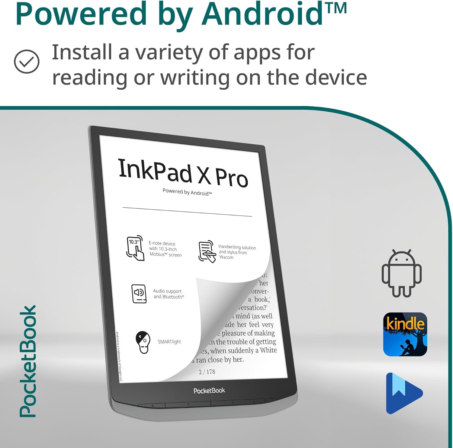 ANDROID POWERED E-NOTE: Powered by the Android platform, the InkPad X Pro offers users the freedom to explore a range of third-party apps. Whether for reading or handwriting, you can now customize your experience and download your favorite mobile applications, tailored to your unique preferences.