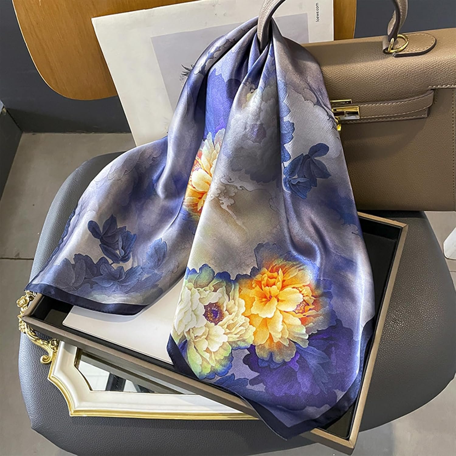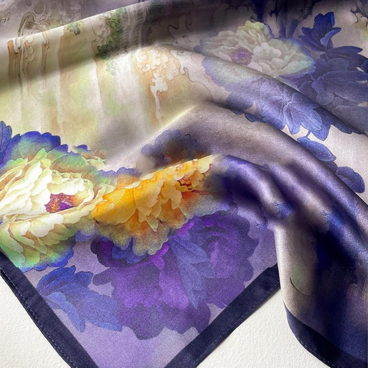 Fashion classy silk square scarves can be used as hair scarf, shawls, beanie, pirate, handbag accessory, hat decoration, cowboy neckerchief, headband, wrist wrap, waist band, decorations, hair accessories, etc. Suitable for business, commuting, party, travel, leisure, holiday, gifts.