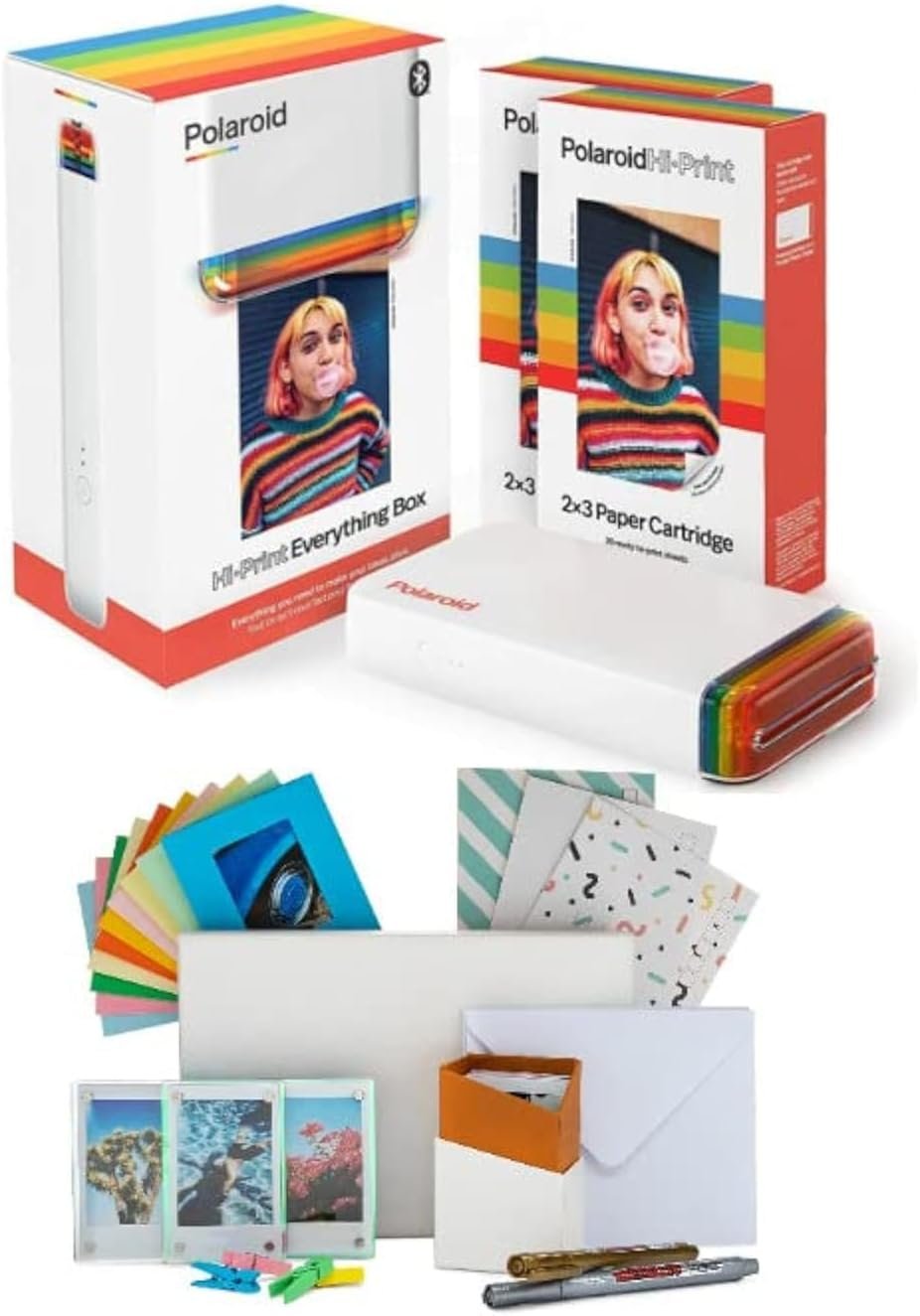 Bundle Includes: Polaroid Originals Hi-Print 2 x 3-Inch Pocket Photo Printer with Bluetooth, 2 x Polaroid Originals Hi-Print 2×3-Inch Paper Cartridge (20 Sheets), Instax Film Kit for Fujifilm Mini with 3 Magnetic and 10 Hanging Frames and Storage Box