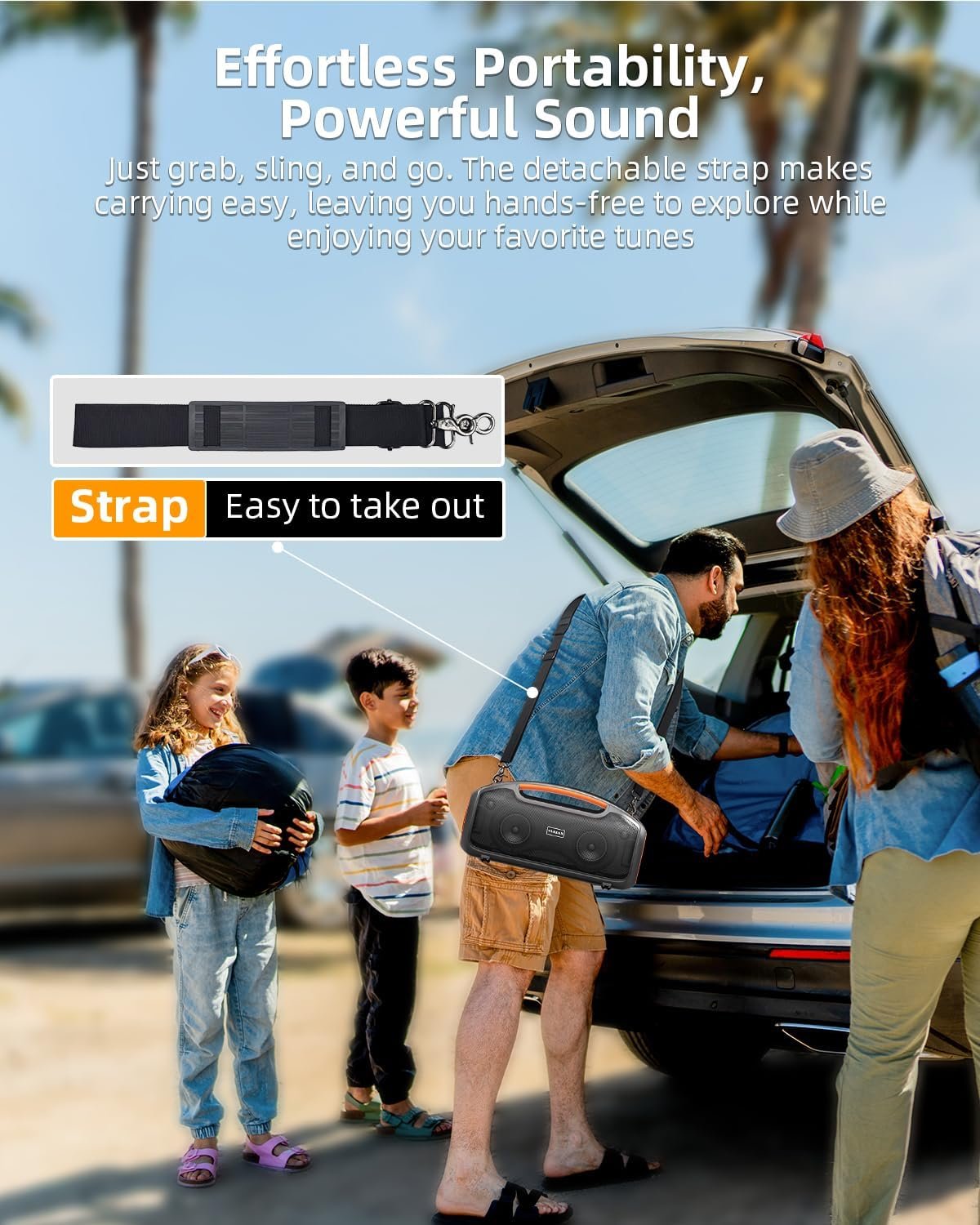 ๐ŸŽถ ๐”๐‹๐“๐‘๐€-๐๐Ž๐‘๐“๐€๐๐‹๐„ ๐ƒ๐„๐’๐ˆ๐†๐ & ๐“๐–๐’ ๐–๐ˆ๐‘๐„๐‹๐„๐’๐’ ๐’๐“๐„๐‘๐„๐Ž: Take it anywhereโ€”this rugged speaker is built for adventure. With reinforced corners, shock-resistant housing, and a removable shoulder strap that lets you sling it over your back like a weekend getaway duffel. Flip on TWS (True Wireless Stereo) mode, and pair two speakers for deep, immersive surround soundโ€”with crisp audio separation that puts you right in the middle of the action, like front-row seats at a sold-out arena show.