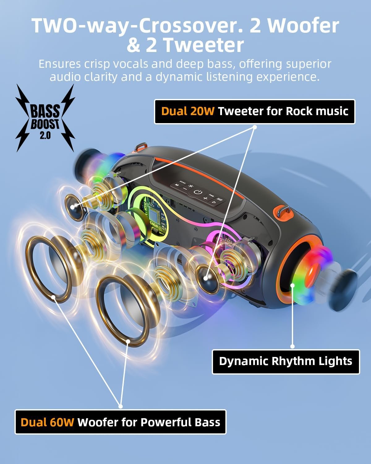 ๐ŸŽถ ๐Ž๐๐„-๐“๐Ž๐”๐‚๐‡ ๐๐€๐’๐’ ๐๐Ž๐Ž๐’๐“ & ๐‡๐ˆ-๐…๐ˆ ๐€๐”๐ƒ๐ˆ๐Ž : Press the Bass Boost button and feel your ribs tremble like when a bass-heavy trap beat drops at a Brooklyn block partyโ€”deep, punchy, and impossible to ignore. Engineered with TI amplifiers and DSP chips, it cuts through the noise like a laser through summer haze: crystal-clear highs that snap like fresh ice cracking on a backyard pond, and lows so tight theyโ€™ll make your sneakers tap on their own to the beat. Just pure, balanced sound that turns your living room into a warehouse rave or your beach bonfire into a full-blown EDM festival. Perfect for hip-hopโ€™s swagger, popโ€™s hooks, and EDMโ€™s electric pulse.