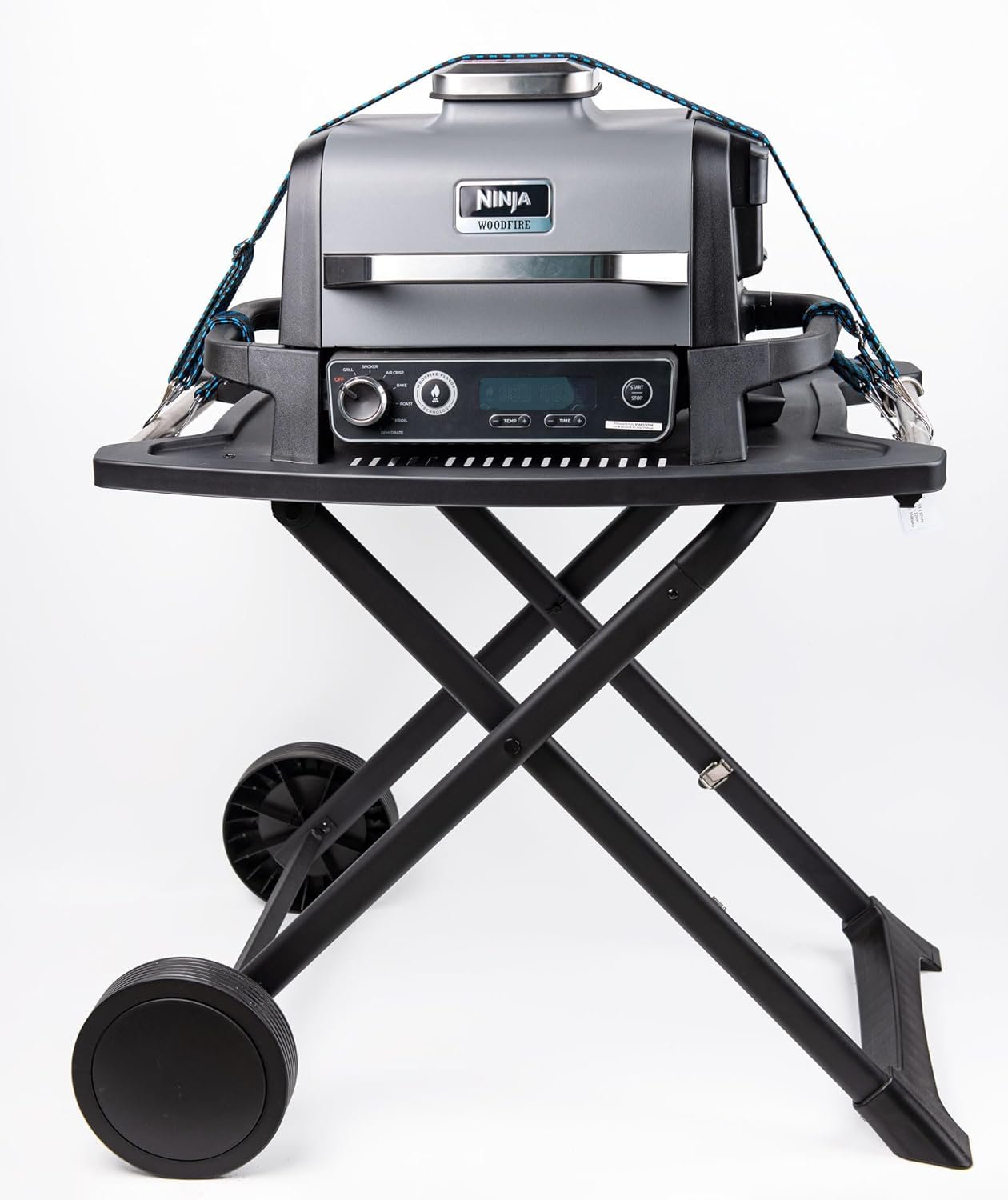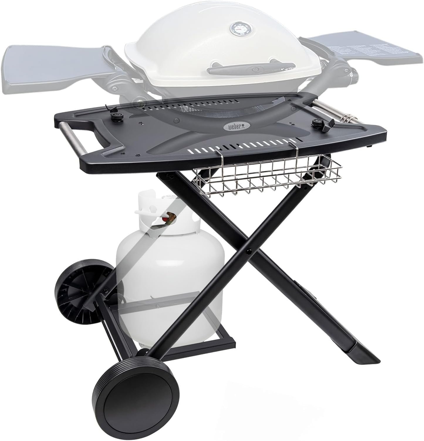 【Perfect Fit】This portable grill cart fits for Weber Q1000, Q2000 Series Gas Grills including Q1200, Q1000, Q2200, Q2000, Q2400. Also fits for Ninja Woodfire Grill OG700 Series(Note: Two short elastic Ropes are used to secure Ninja grills). Please confirm the model number of your grill before ordering. The cart is 32.3″ L * 25.59″ W * 27″ H when fully opening, 17.44 lb weight.