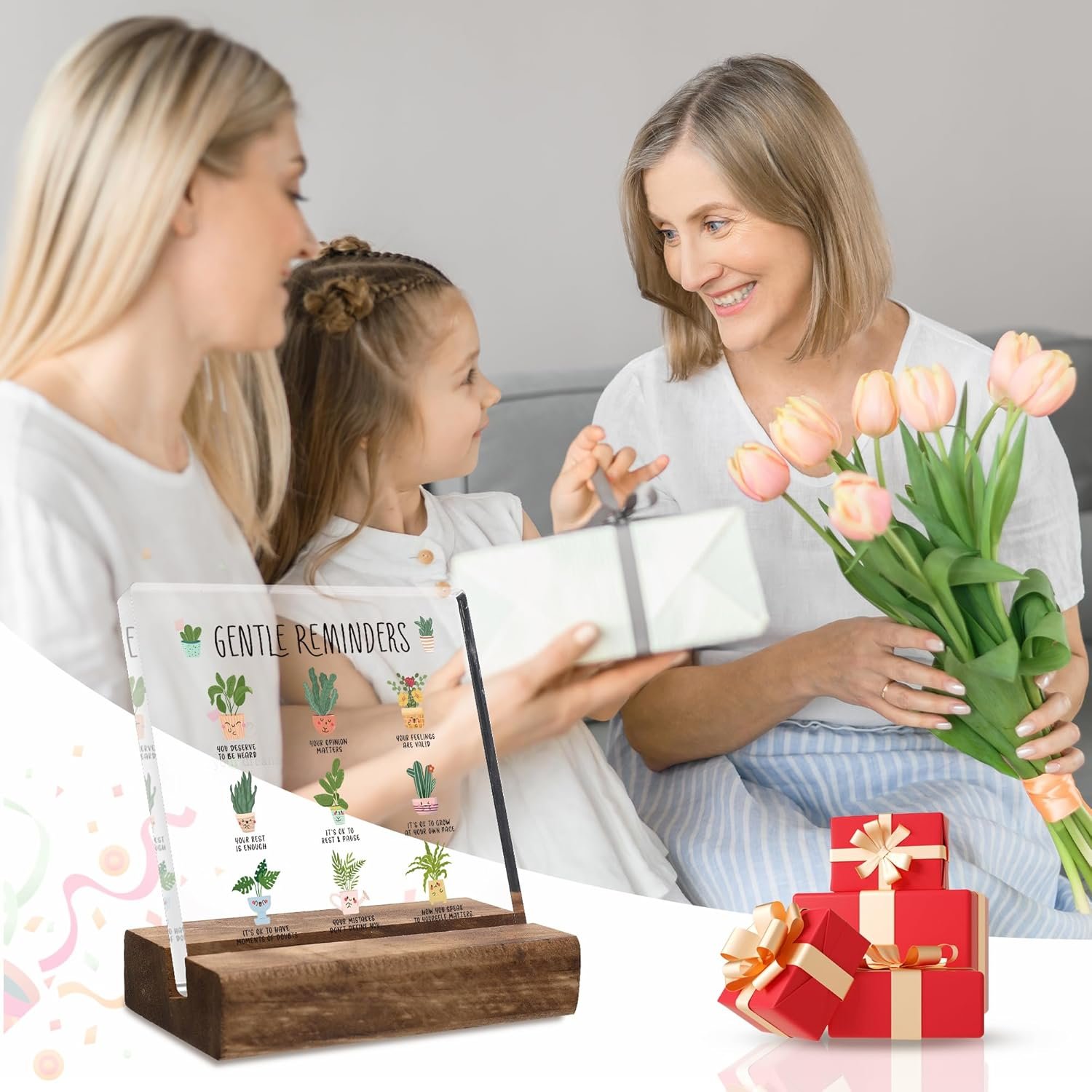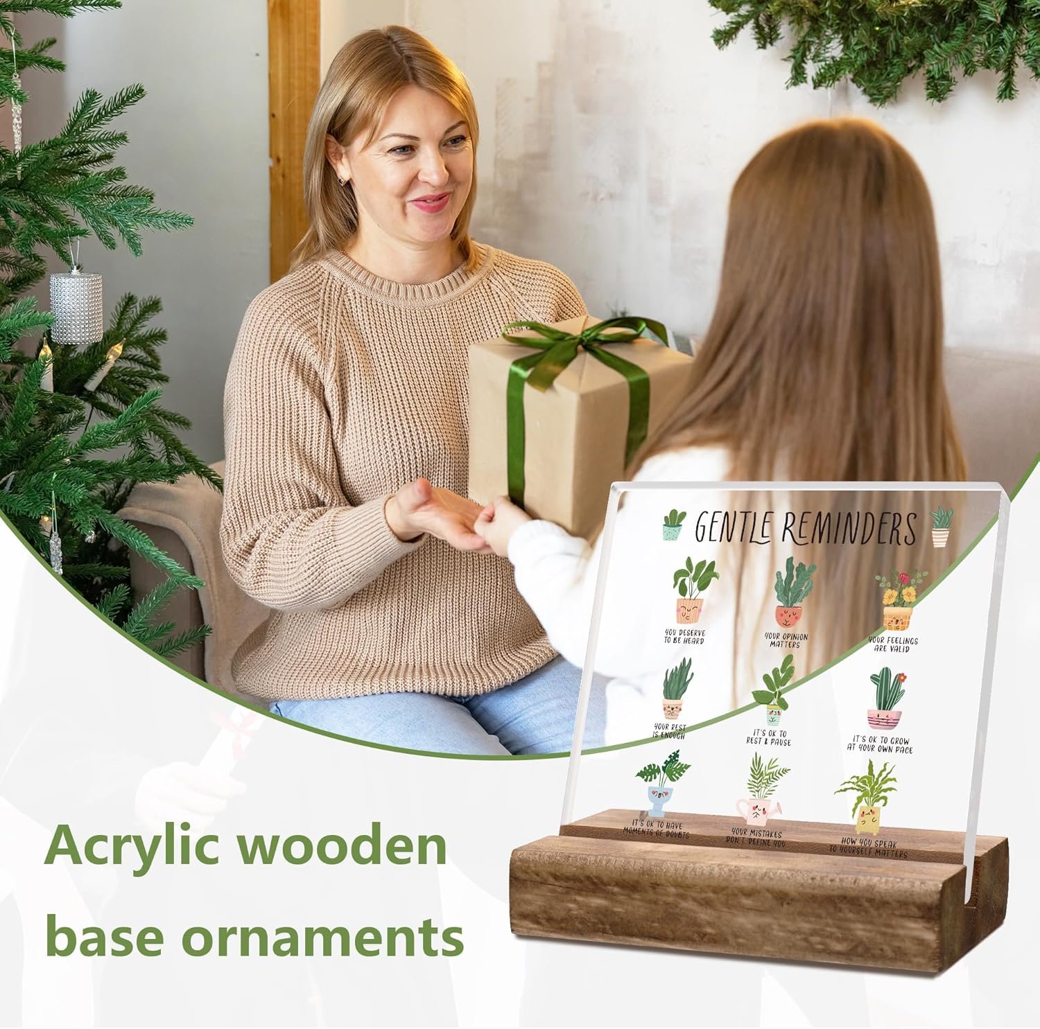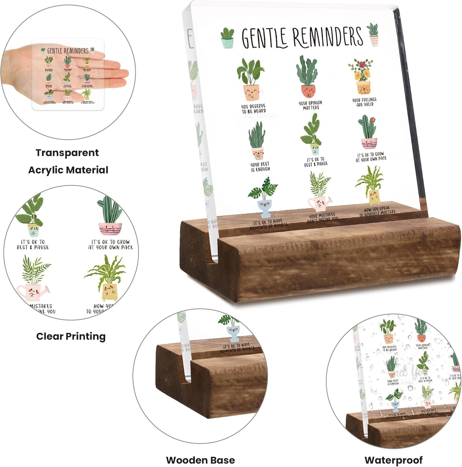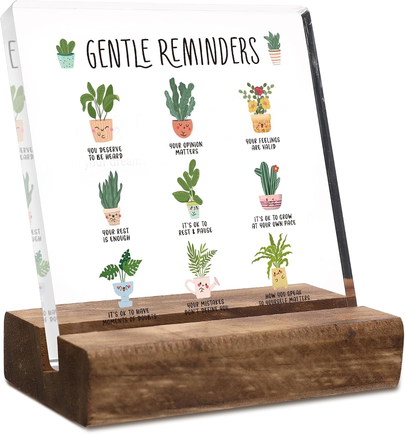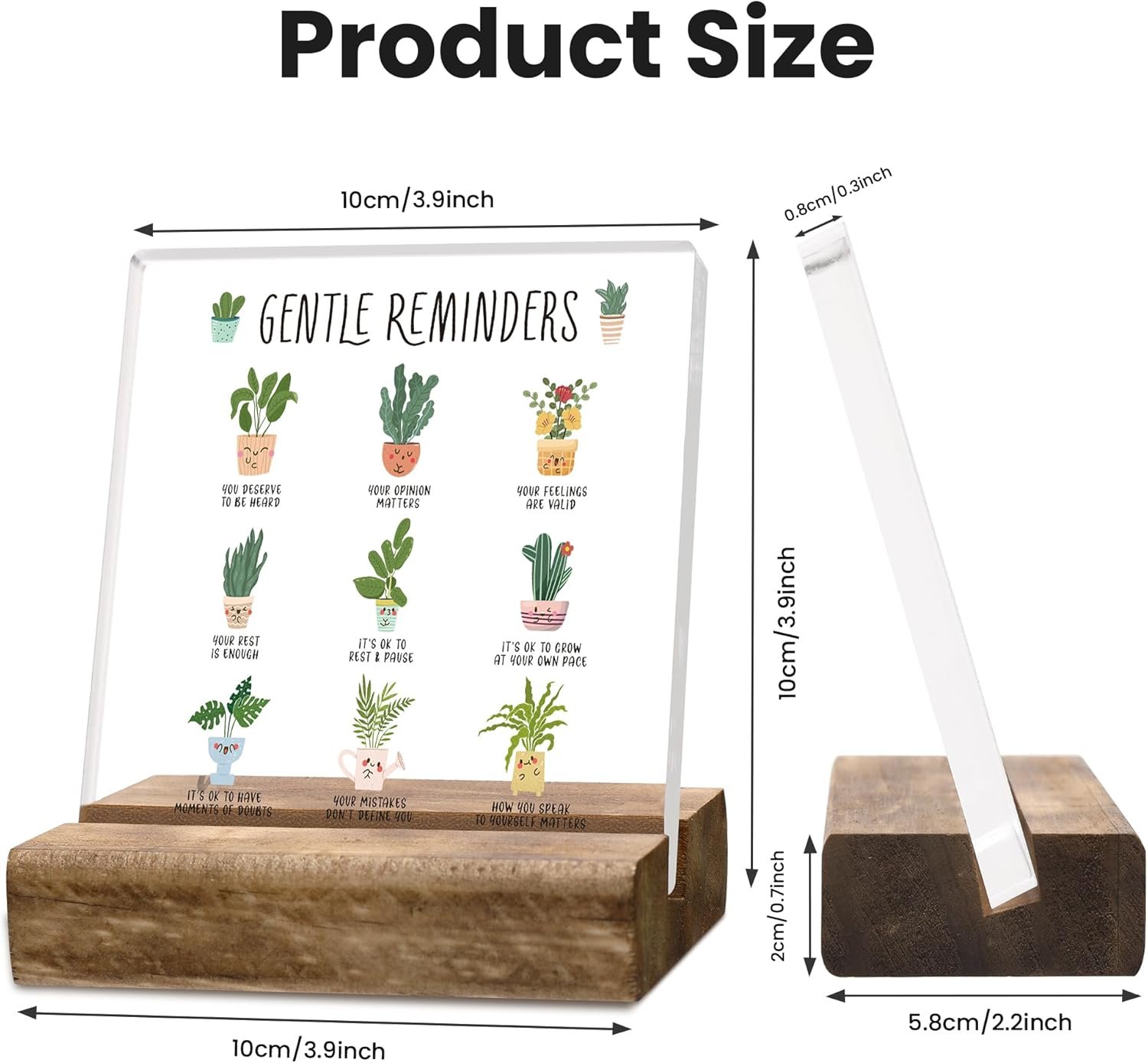 What you will get: The package includes 1 acrylic plaque printed with “Gentle Reminders”. 1 piece wooden tabletop decorative base. These Positivity Inspirational quotes will inspire you to keep going and are the perfect gift for women men students Birthdays, Christmas, New Year, Graduation