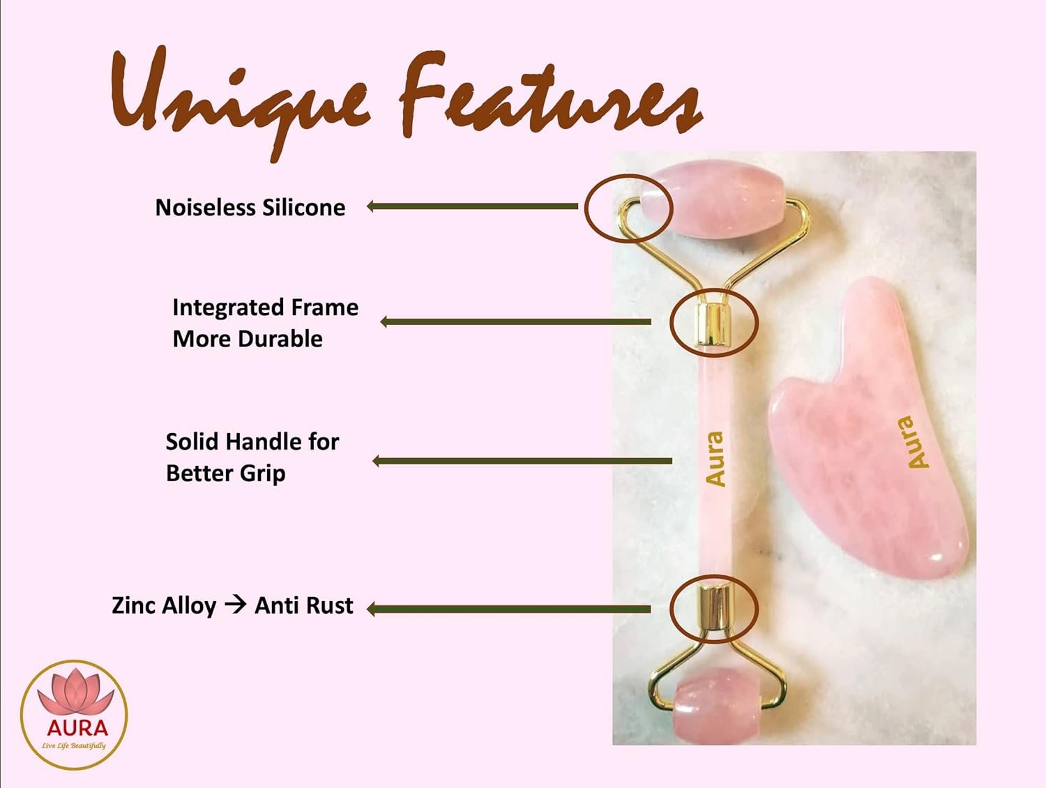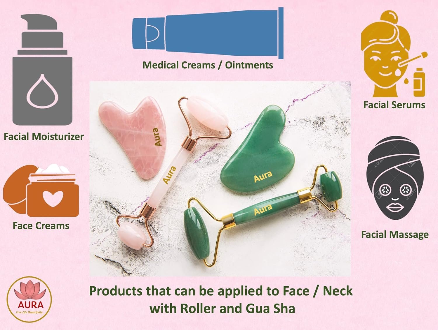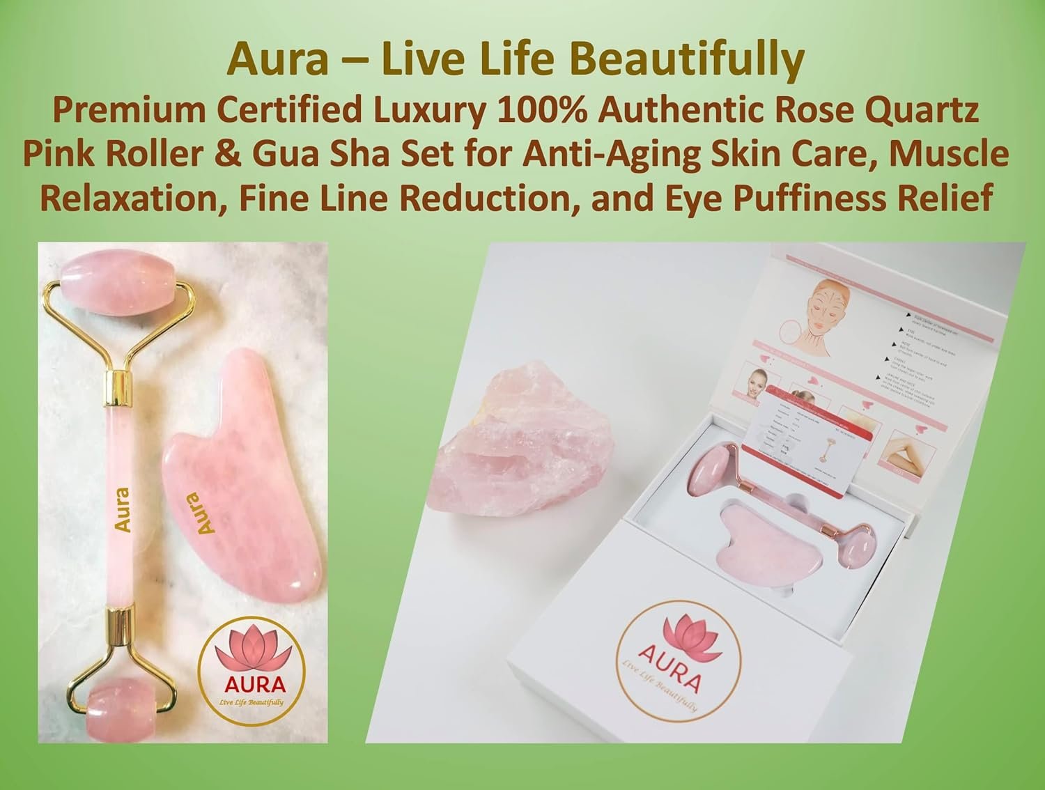 Dual Action: Includes a Rose Quartz Roller for gentle rolling and a Gua Sha tool for sculpting and lifting, targeting various facial areas
