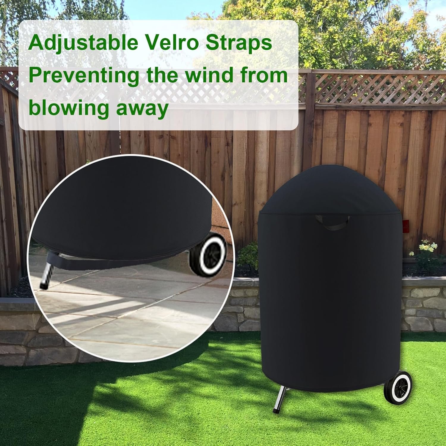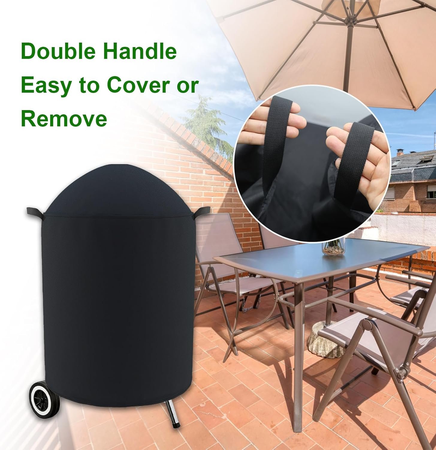 1.【Dimension】: The cover measures 26.5″Dia x 28″H.It fits Weber: Original Kettle Premium Charcoal Grill 22″,Jumbo Joe Premium 22″ Charcoal Grill,Original Kettle 18″ Charcoal Grill,Compact Kettle Charcoal Grill Barbecue 57cm & 47cm,Smokey Mountain Cooker Smoker 18″; Char-Griller: Model E56714,Model E86714; Papapacks 18″ Charcoal Grill; Joyfair 18″ Charcoal Grill; Megamaster 18″ Heavy Duty Charcoal Kettle Grill; GRILIFE 18″ Charcoal Grill; GREEN PARTY 18 inch Kettle Charcoal BBQ Grill