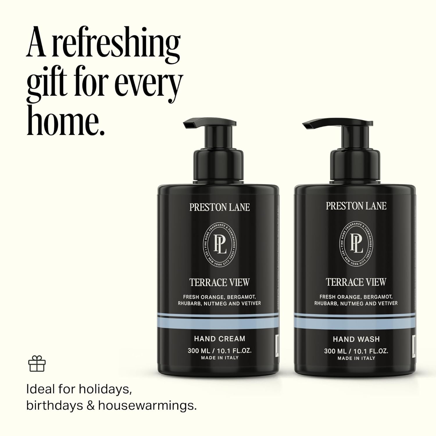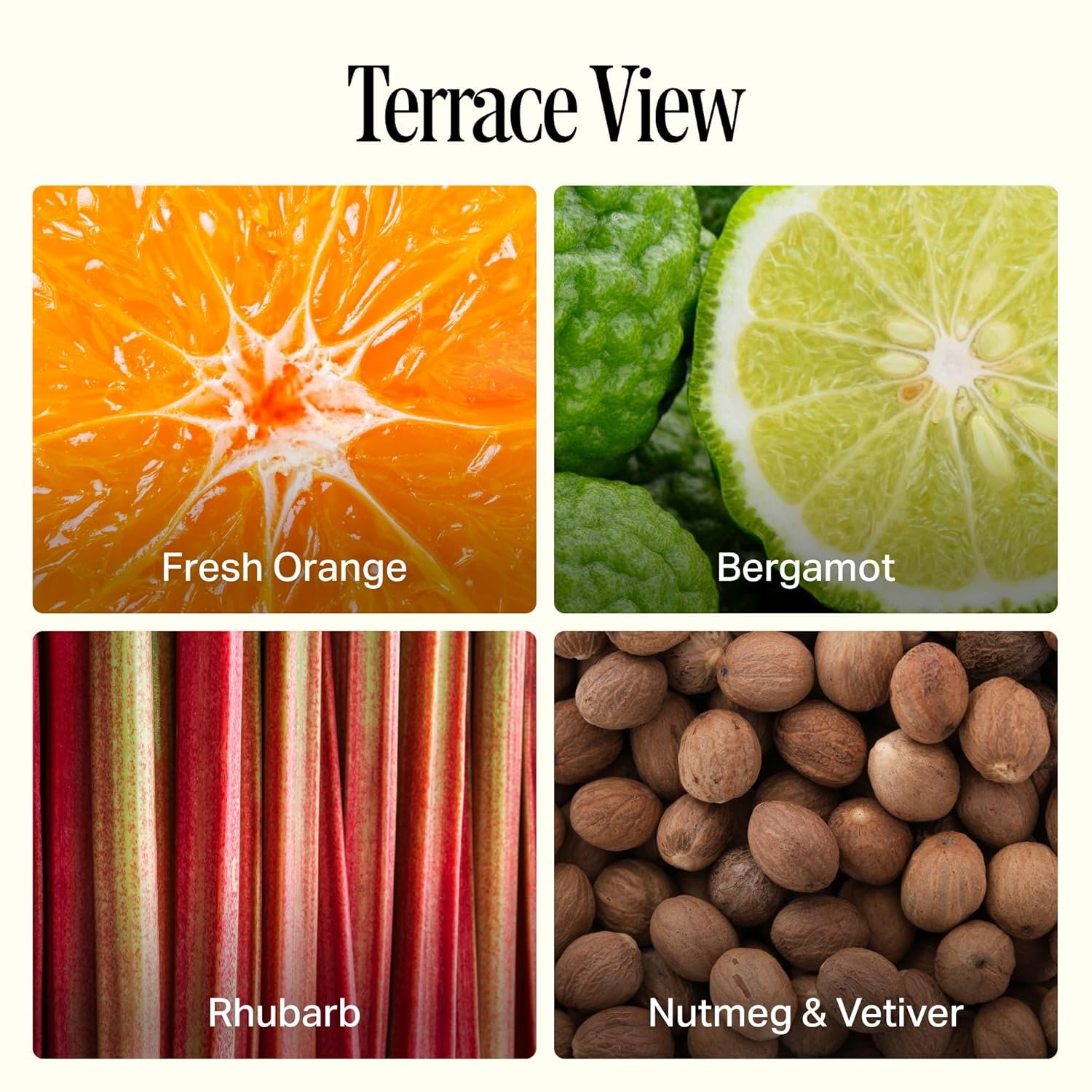 ELEGANT FRAGRANCE: Terrace View captures the warmth of the Italian countryside, a sophisticated blend of Fresh Orange, Bergamot, Rhubarb, Nutmeg & Vetiver that adds a touch of everyday luxury
