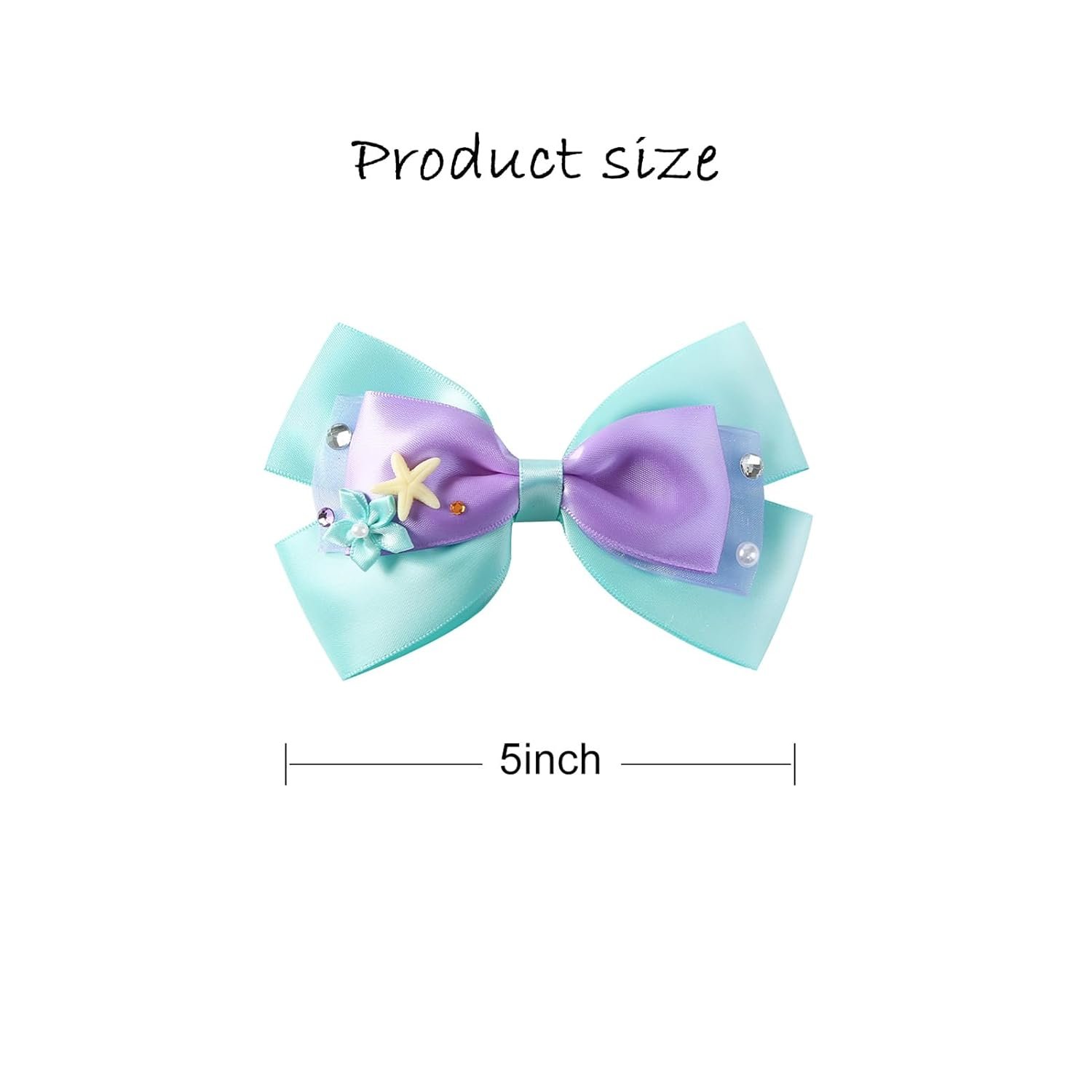 Package Includes: A princess style hair bow clip. Adorable and comfy!Material: Made of stain/tulle, securely attached to no-slip alligator clip. Cute and sturdy.Cute Design: Princess character inspired, hand-made hair bows with a little starfish and flower decorated.Occasions: Perfect for daily wear, birthday parties, Halloween pretend play, Christmas gift, photo props.