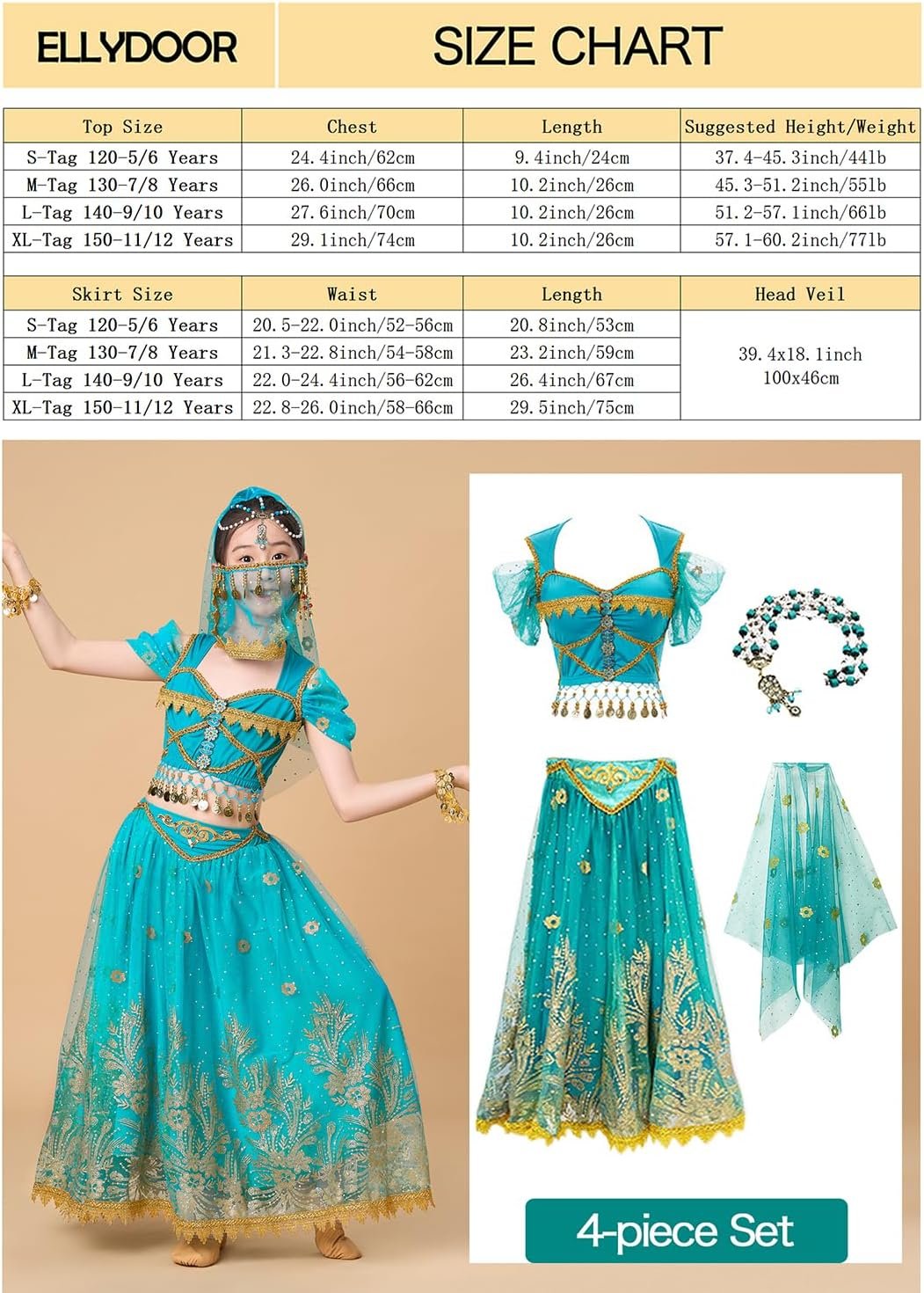 ELLYDOOR Aladdin Princess Jasmine Costumes for Girls