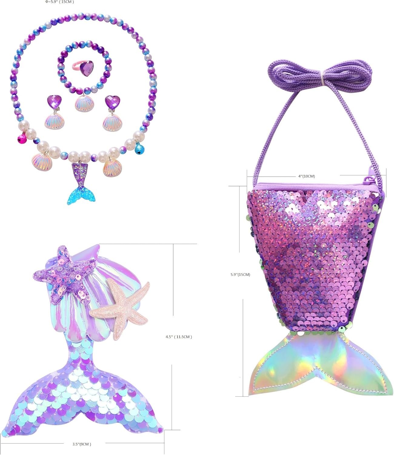 Including Princess Princess Ariel Dress + Sequin bag +Mermaid hairpin +Mermaid Necklace+Mermaid Bracelet+Earring+Ring