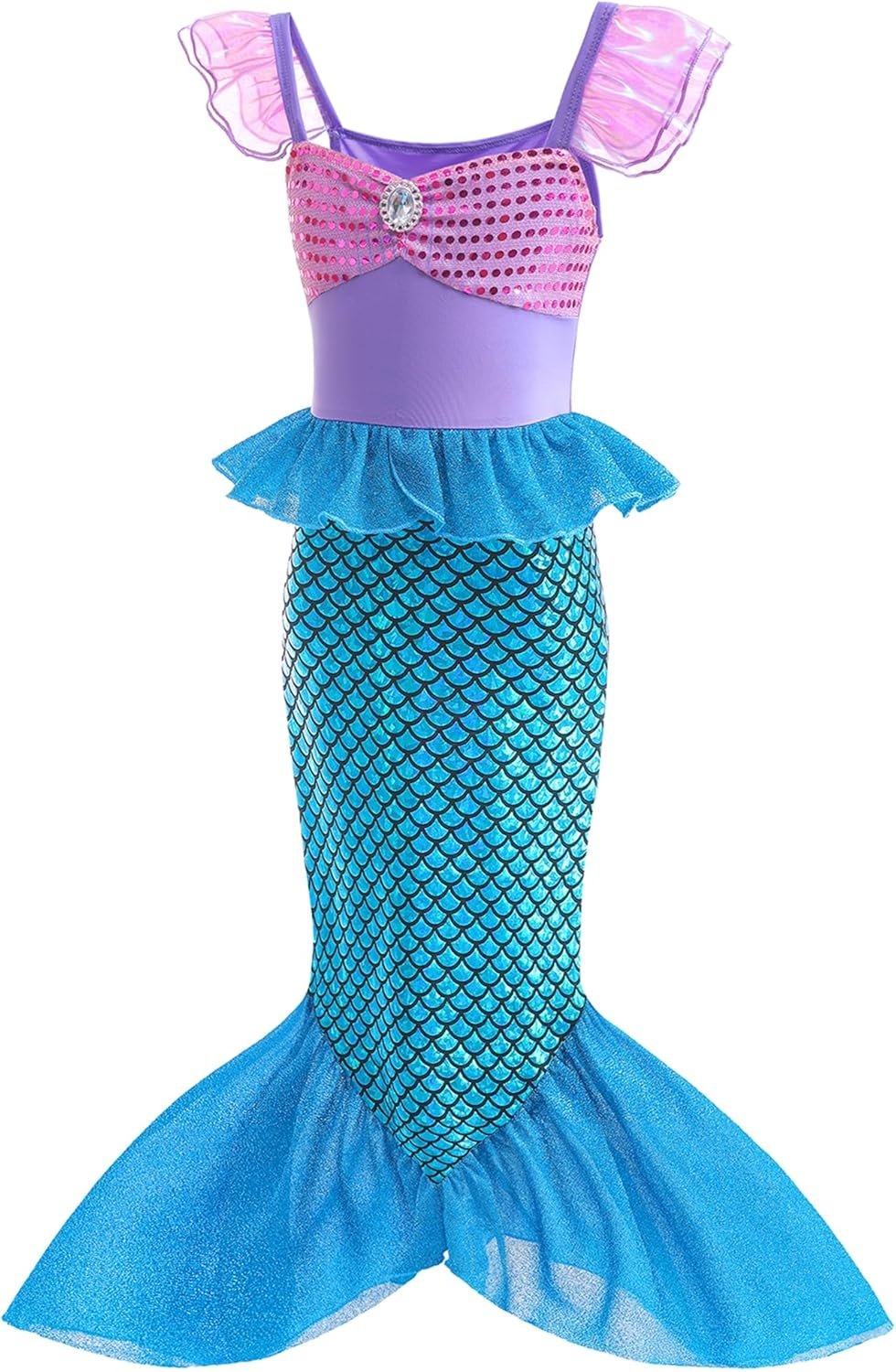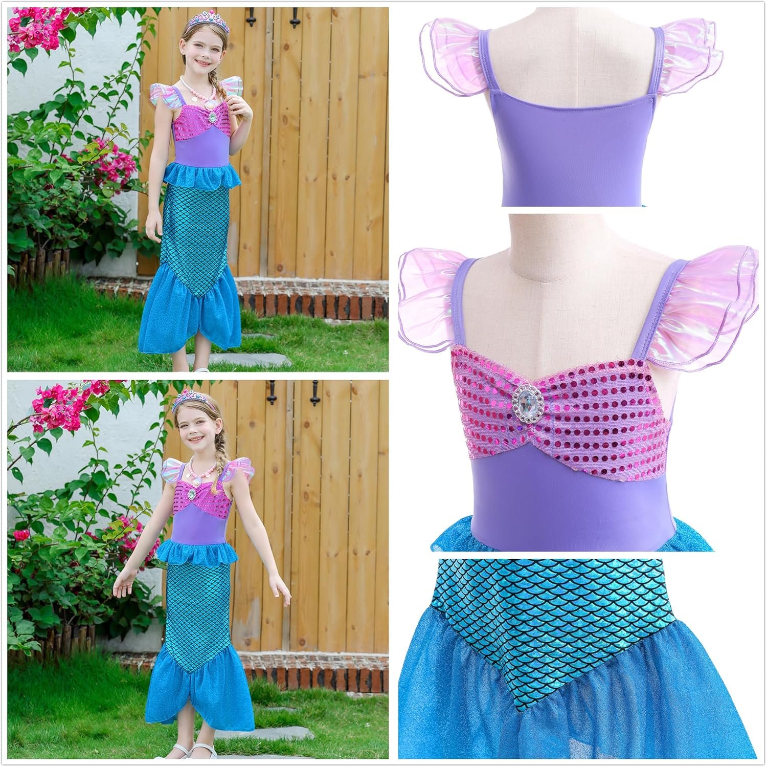 Little Mermaid Princess Costume Ariel Dress for Girls Birthday Party Halloween Cosplay Costumes 3-10Years