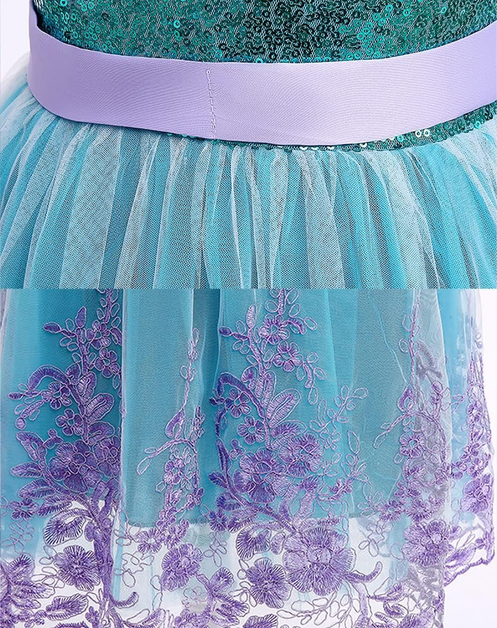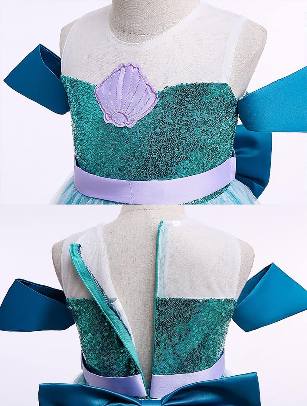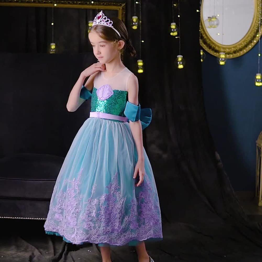 Princess Little Mermaid Costume for Girls with Mermaid Wig Crown Necklace Gloves Princess Ariel Cosplay Dress Up for Birthday Party Halloween Costume