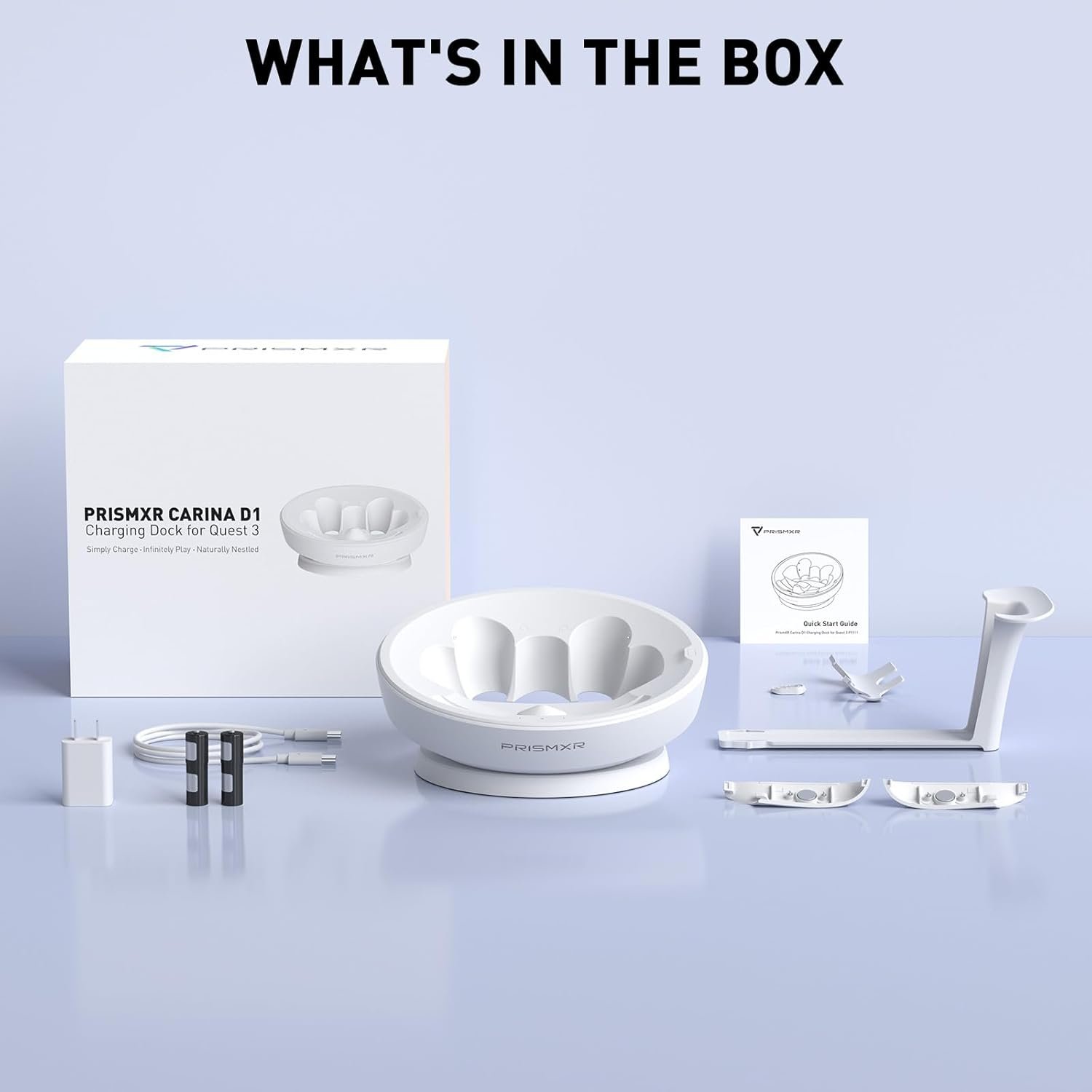 Ease of Use: Easy to set up, even when equipped with a battery strap, charges seamlessly (The battery strap can’t be charged by Carina D1). When take off Quest3 and place it on PRISMXR Charging dock, it’ll be fully charged to 100% and ready for your next adventure.experience.