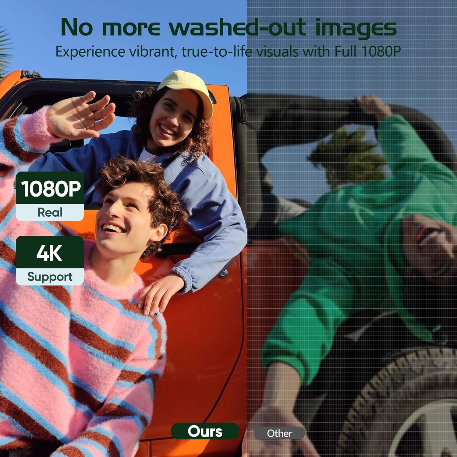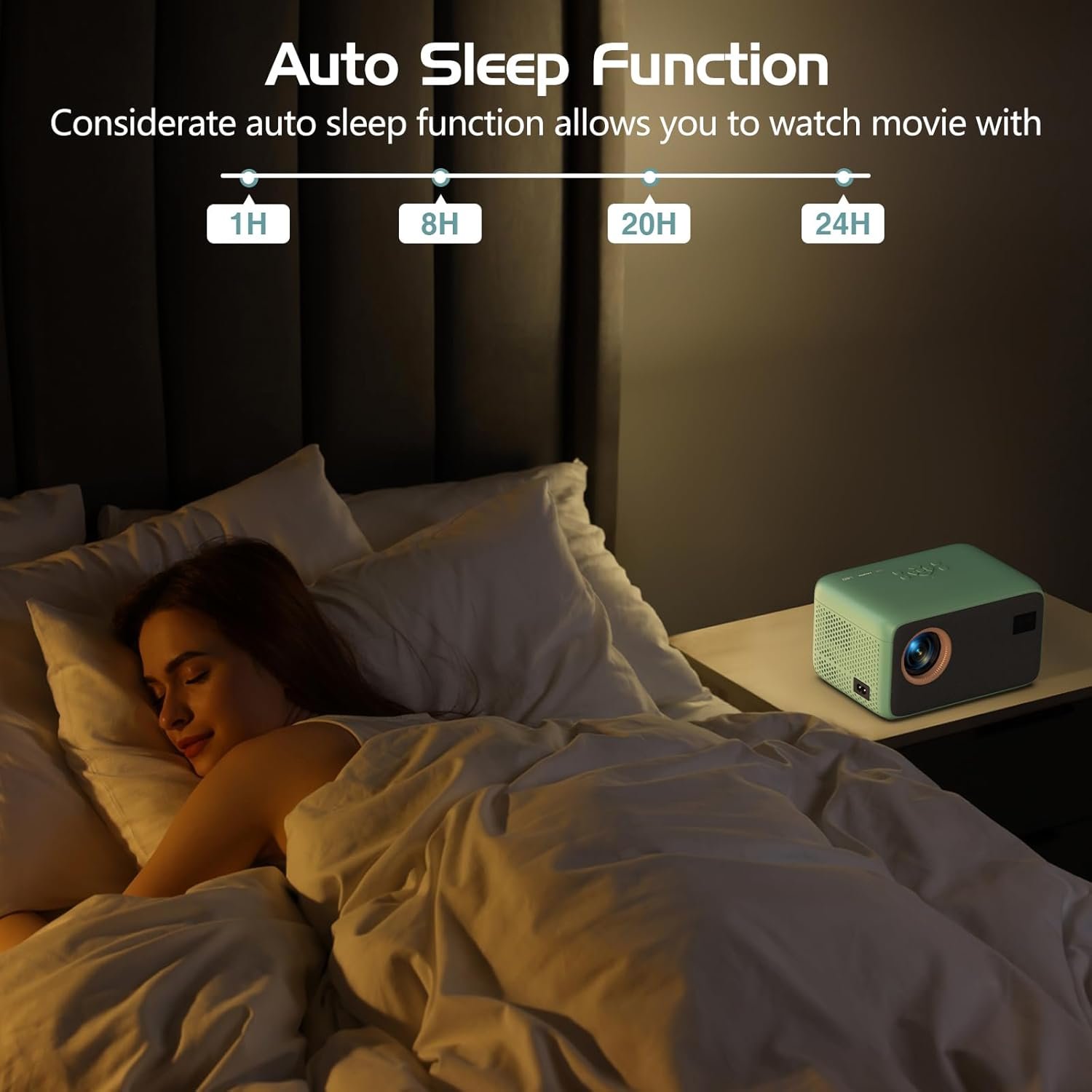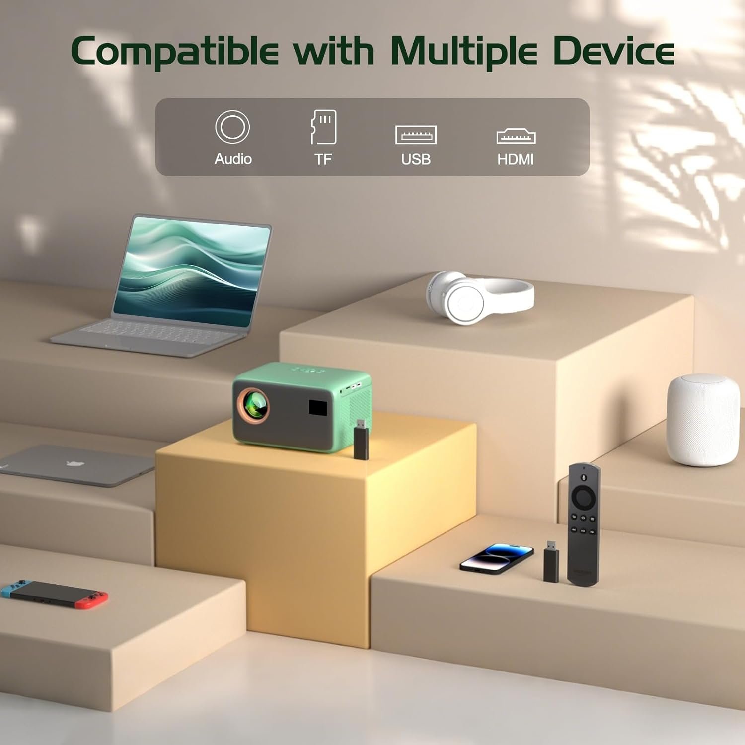 【Native 1080P & 4K support & 200ANSI】Our smart mini projector features true native HD 1080P resolution and 4K decoding for detailed movie images and vivid colors. In addition, the projector provides 200ANSI high brightness brings clearer and brighter images, precise visuals with yourself, your family and friends whether you are outdoors at home or in the bedroom! Note: This product does not have apps built-in.