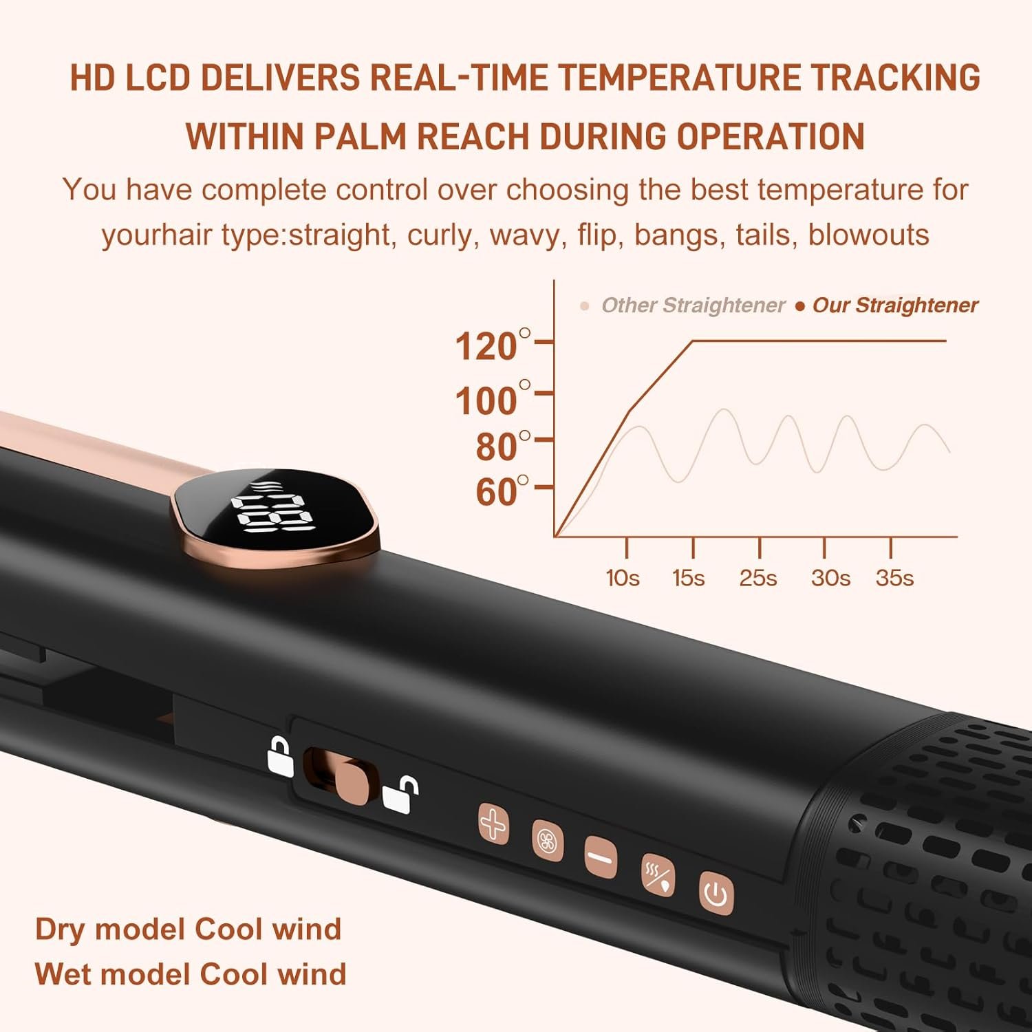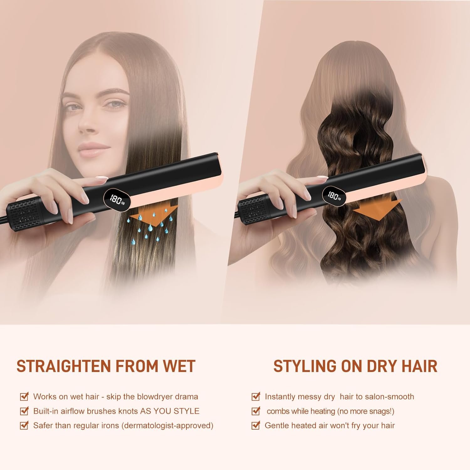 ⏱️ Effortless Wet-to-Styled in 90 Seconds: No more blow-dryer + straightener juggling! Our 2-in-1 system dries and straightens medium-length hair in under 90 seconds with salon-smooth retention.