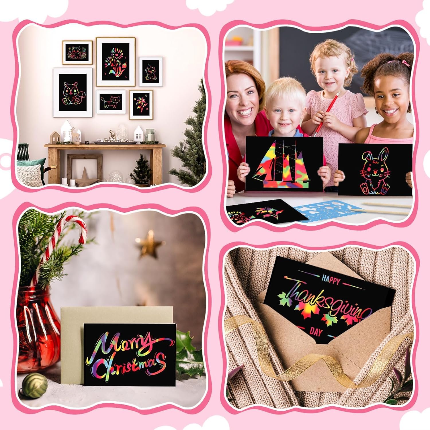 【Inspire Imagination and Creativity】Watch as children scratch off the black coating to bring hidden colors to life! Great for developing fine motor skills, artistic expression, and hours of screen-free fun
