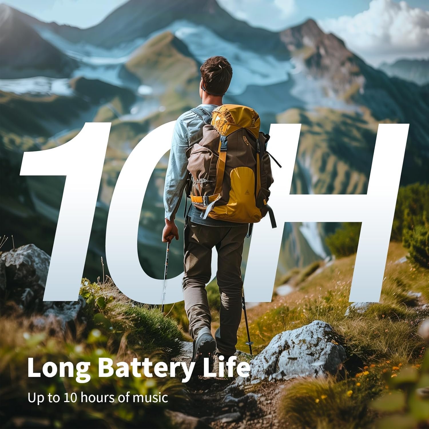 [Stay Active in Any Weather] With up to 10 hours of music, calls, and podcasts on a single charge, these open ear headphones keep you going through your day. Featuring an IPX6 waterproof rating, they’re resistant to sweat and moisture, making them perfect for cycling and hiking. (Note: Not designed for swimming.)