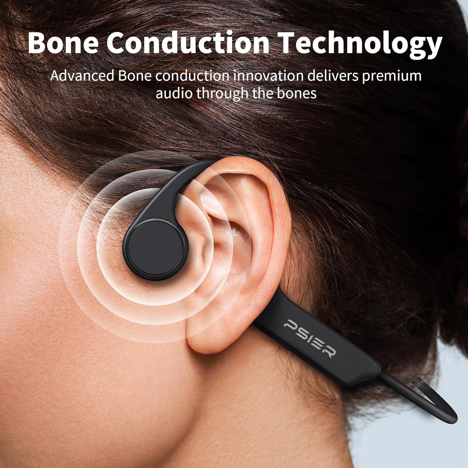 [Bone Conduction Comfort] PSIER Bone Conduction Headphones leverage new bone conduction technology to transmit rich, clear sound through your bones, offering superior audio clarity. The open-ear design lets you immerse in music while remaining fully aware of your environment.