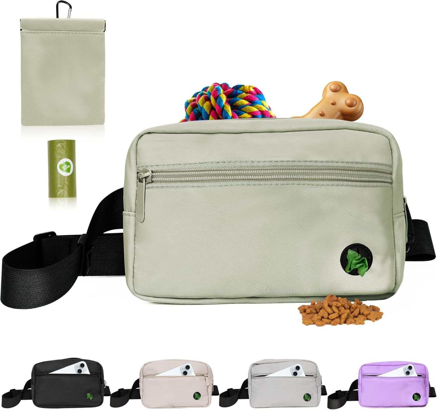 GREATER CONVENIENCE FOR DOG PARENTS: Roomy interior holds a tennis ball, leash, phone, 16 oz water bottle, keys, snacks for you and your pup, and lots more! The go-to dog walking bag for office, gym, errands, festivals, and social life