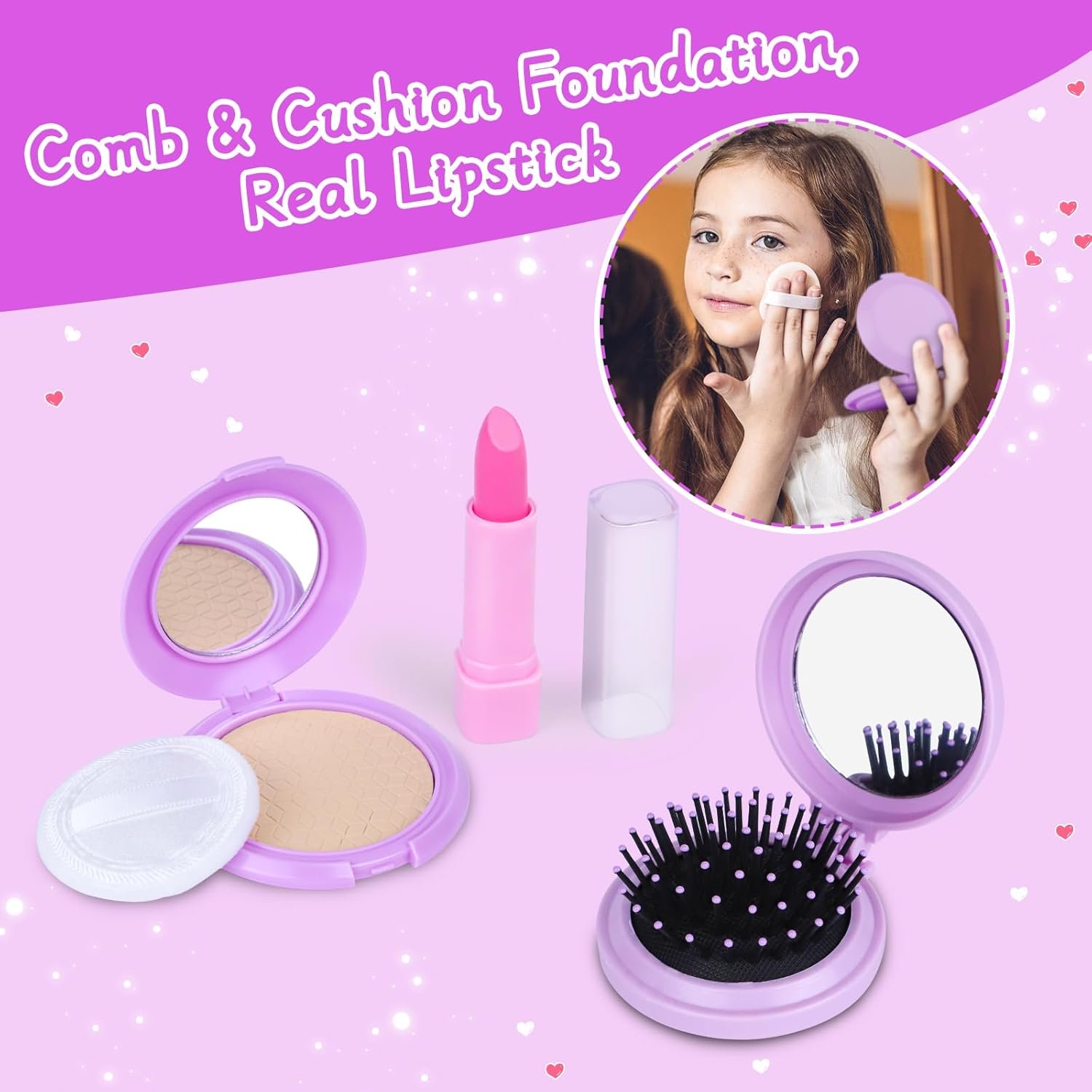 Washable Lipstick and Cushion Foundation – Young girls will love pretending to apply face powder with the applicator and put on a bright shade of lipstick just like you do each morning. This makeup toys are washable and looks like the real deal, and you don’t have to worry about the mess!