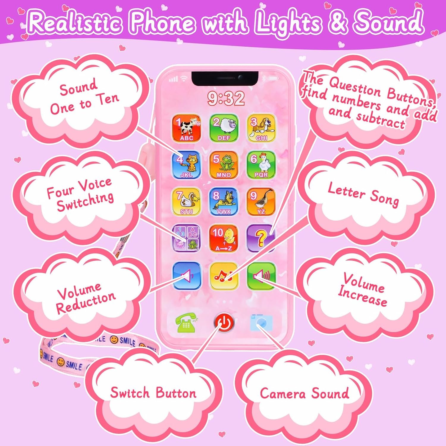 Toy Phones for Toddlers – Toy phones are great fun for toddlers and help them engage in pretend play. This phone has eighteen buttons, each giving different displays upon pressing. The fun animations and different activities introduce the child to numbers and counting, add and subtract, conversational skills, and social skills.