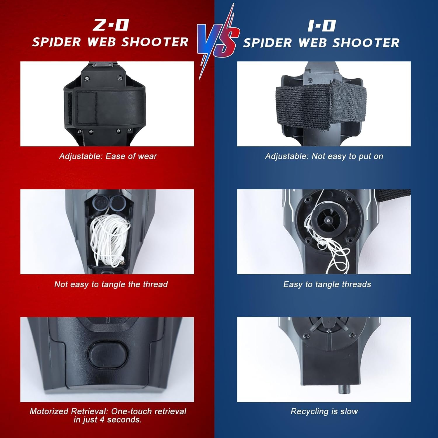 Spider Web Shooter 2.0:Upgrade your superhero playtime – the real deal for aspiring web-slinging superhero! Our newly enhanced model has undergone rigorous testing, ensuring a wire that never muddle and a flawlessly running motor for uninterrupted action.