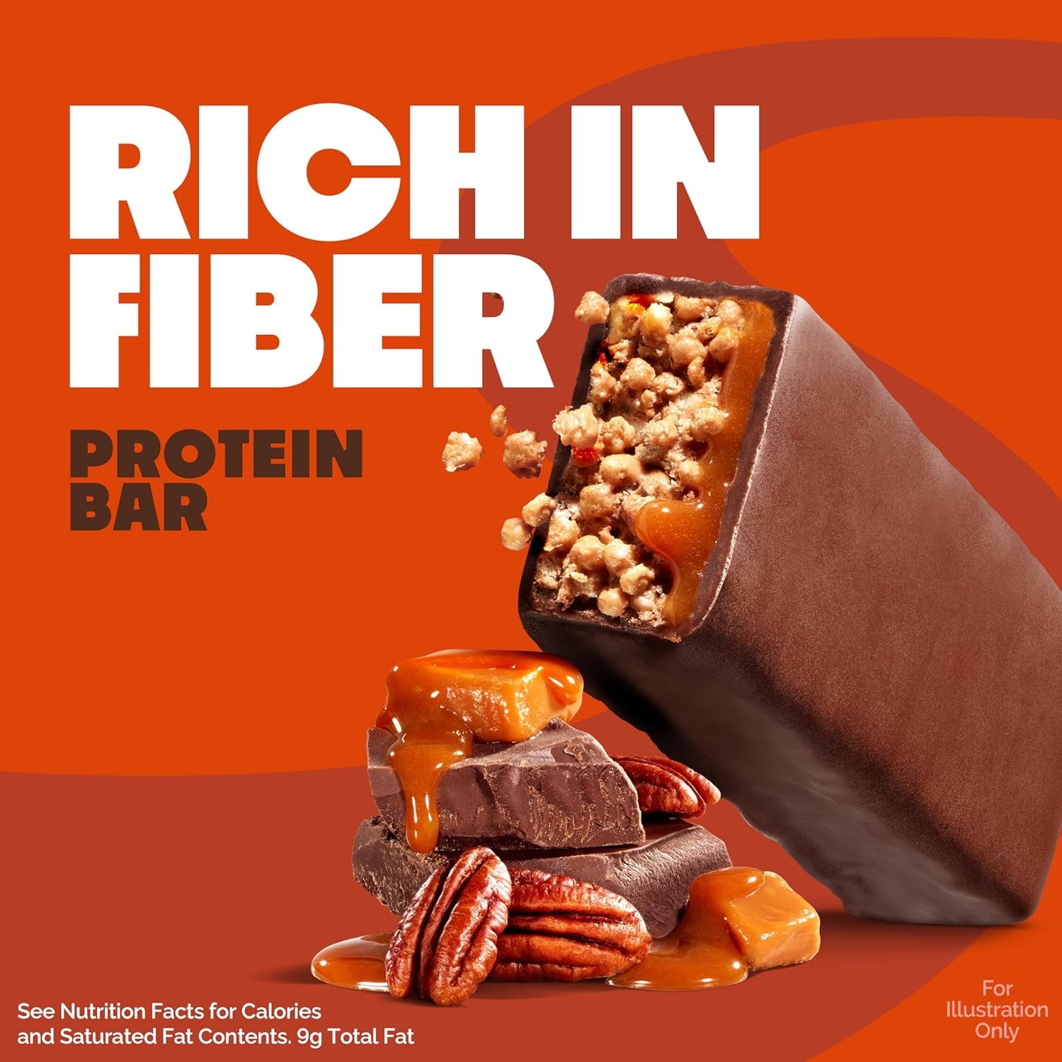 PROTEIN FORWARD. 15g of protein, 1g of sugar, and 3g of net carbs* per serving. Support your fitness goals and enjoy a crispy, chewy protein bar with the irresistibly sweet flavor combo of chocolate, caramel, and pecan