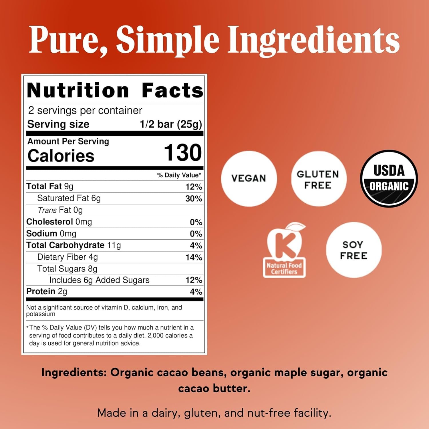 ORGANIC & NON-GMO INGREDIENTS – All of our chocolate is certified organic, certified non-gmo, kosher, and free of gluten and soy.