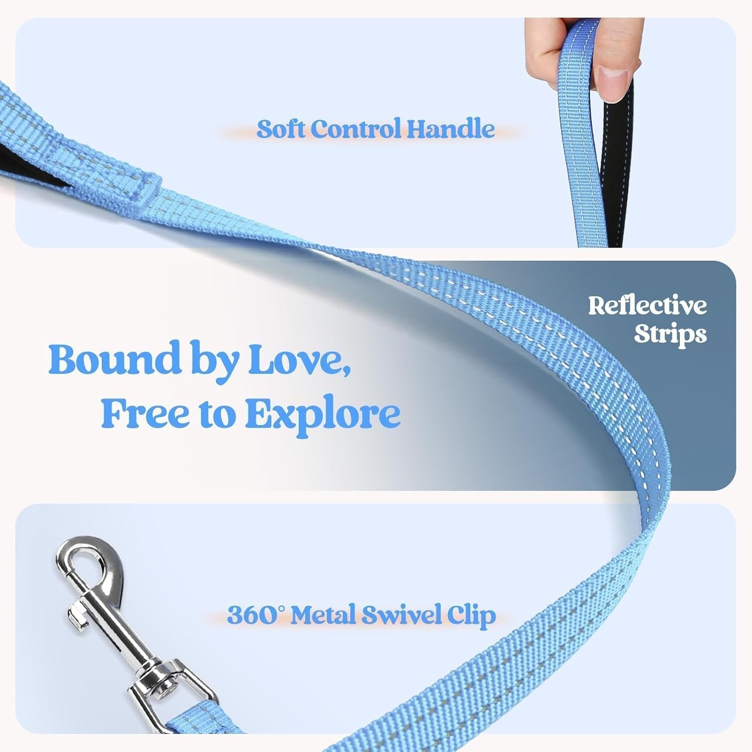 Dog Harness with Leash Set: The color-matching harness and leash with reflective bands make it fashion and visible for pet outing. The leash is 5.12ft in length, with an anti-tangling clip and a palm-friendly handle