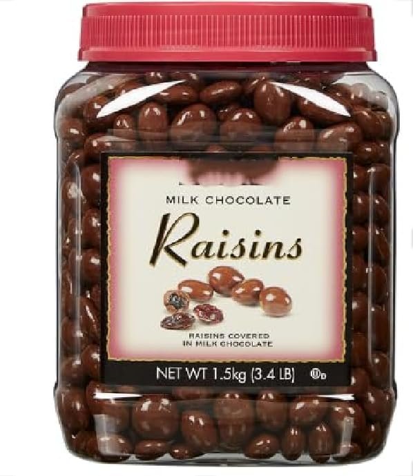 Indulge in the Sweet and Crunchy Goodness of Kirkland Signature Milk Chocolate Covered Raisins! Treat yourself or gift someone special with this mouthwatering 3.4-pound bag of premium milk chocolate covered Raisins!