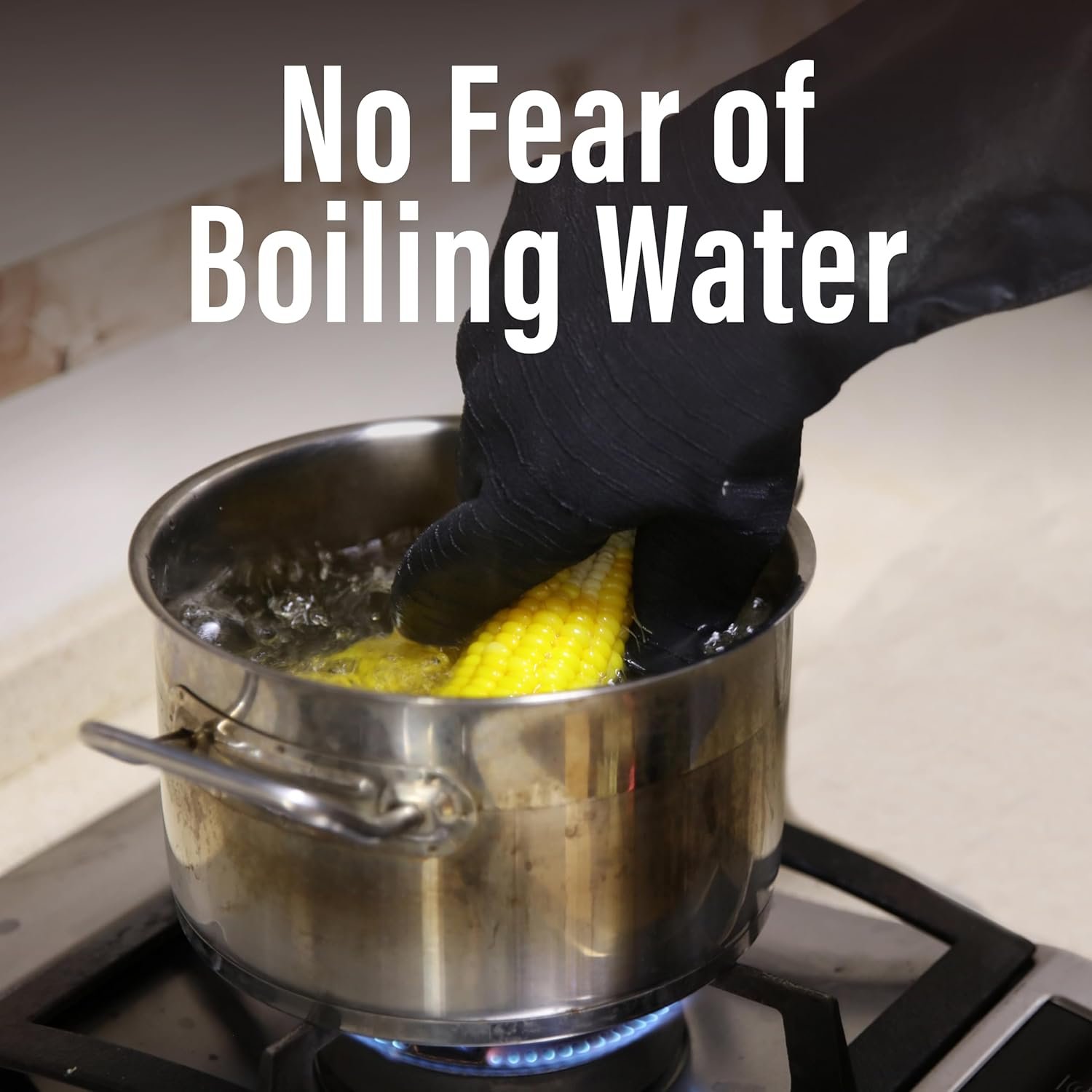 Smooth Hot Liquid & STEAM Management: Experience effortless food extraction from hot boiling water or steam with these gloves, ensuring secure and easy handling. The waterproof neoprene coating offers a reliable grip, enhancing convenience in various cooking tasks, like dipping a chicken in hot water (Please conduct a cold water test to check for potential defective gloves).