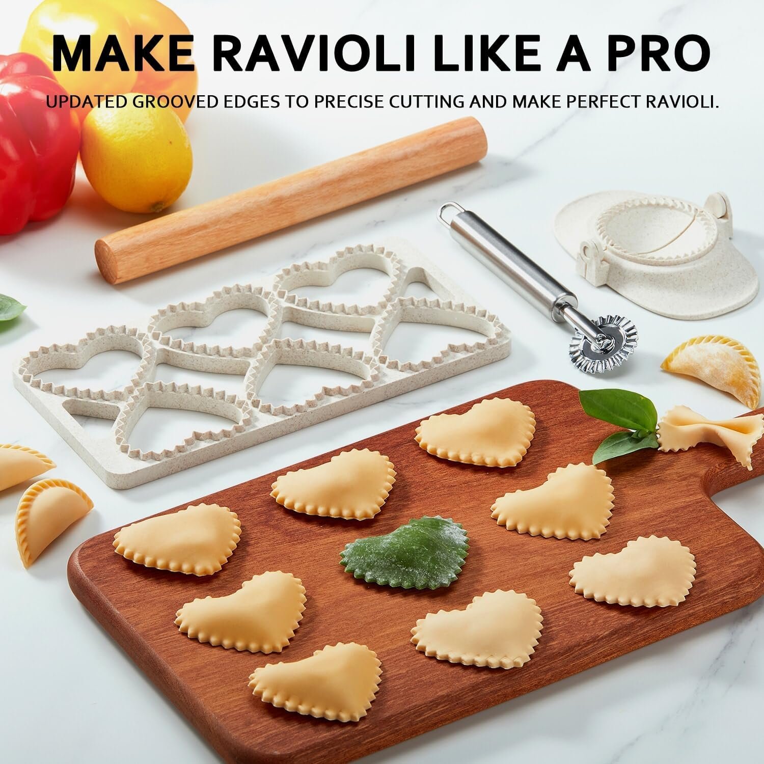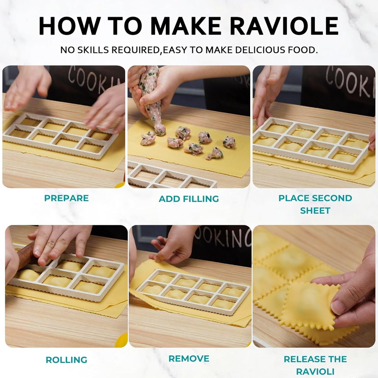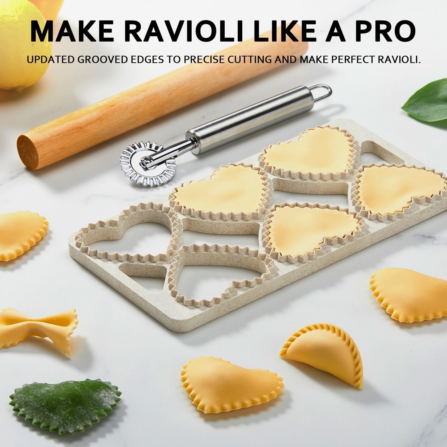 ✔ EASY TO USE: Our ravioli maker press can be used on both sides. Updated grooved edges to precise cutting and immediately make beautiful wonton shapes. You just need to put the ravioli wrapper on the mold, then put the any of stuffing like ricotta, parmesan, or spinach on the wrapper, then cover it with another dough, roll the rolling pin, and press the mold, and you will get complete ravioli. Lightly dust ravioli press with flour and just flip over when complete for easy ravioli release.