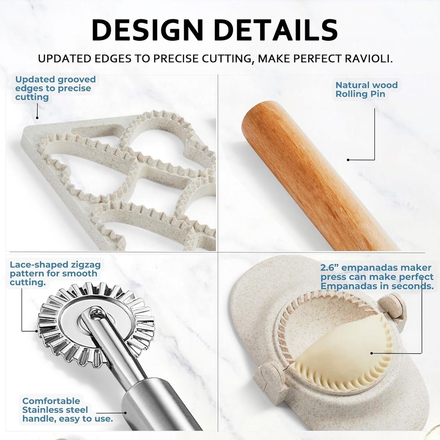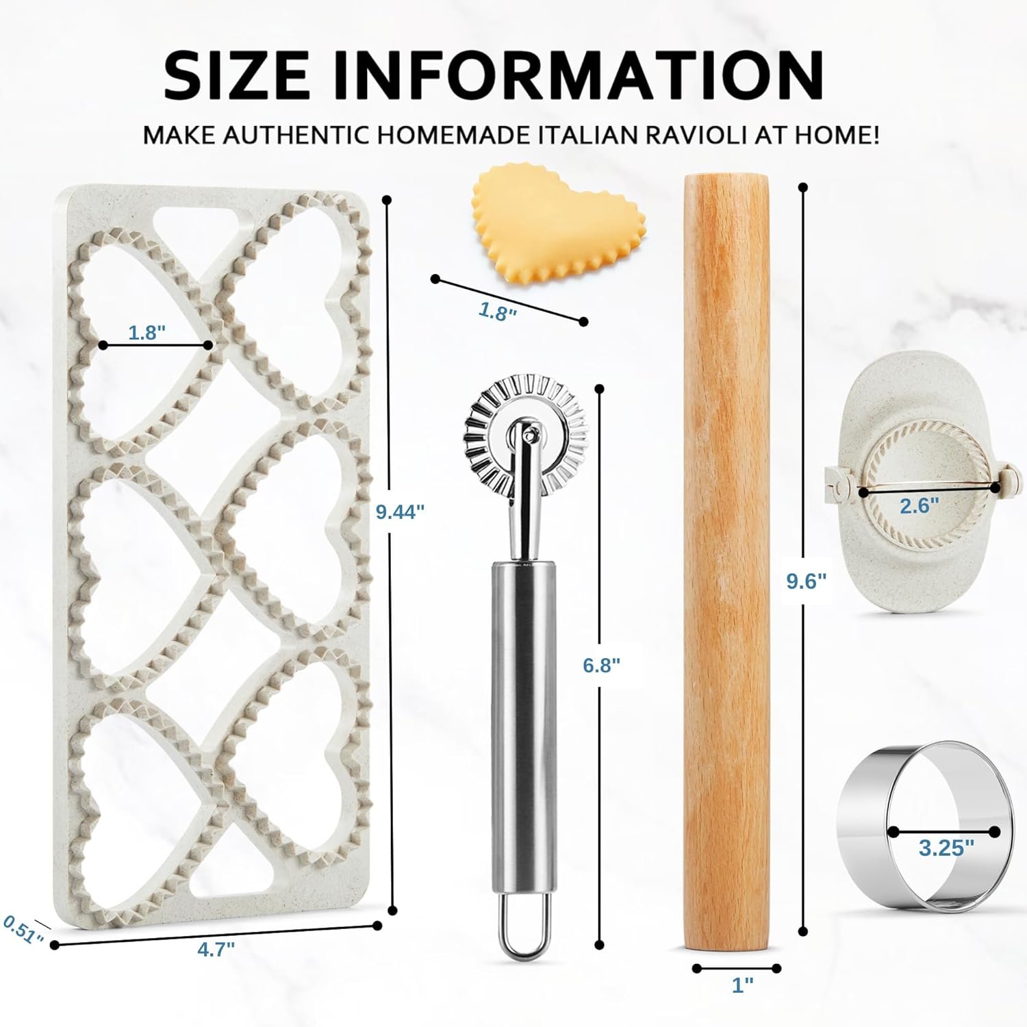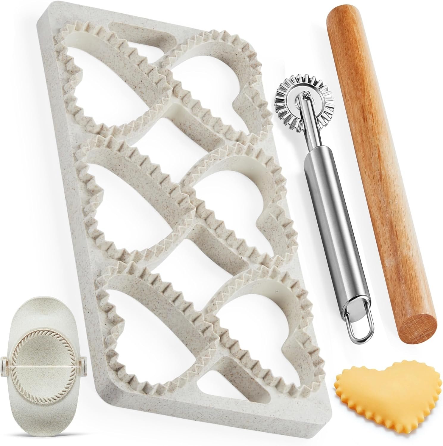 ✔ NO RISK PURCHASE! If you have any issues or think everything is not as advertised, please get in touch with us—24-Hour Customer Support. You will get 1 x Ravioli Maker Press,1 x 2.6inch Empanada Maker Press,1 x Ravioli Wheel Cut, 1 x Wood Rolling Pin, 1 x Special Cleaning Brush. Get your MUMSUNG Ravioli Press Mold Set today and enjoy delicious, perfectly shaped Ravioli every time!