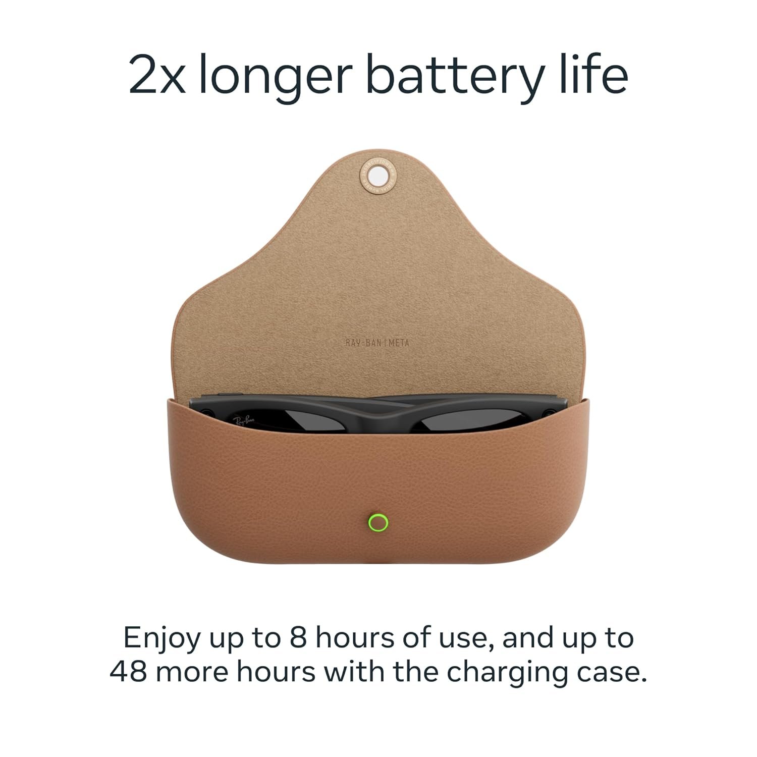UP TO 8 HOURS OF BATTERY LIFE – On a full charge, these smart AI glasses can last 2x longer than previous generations, up to 8 hours with moderate use. Plus, each pair comes with a charging case that provides up to 48 hours of charging on-the-go.