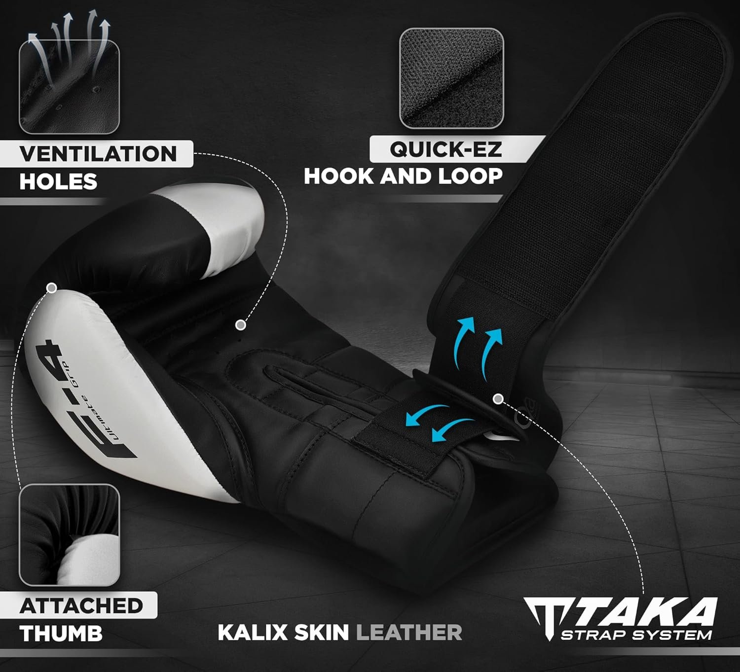 YOUR ULTIMATE BOXING GLOVES– Want one pair of gloves for every boxing drill? The RDX F4 boxing gloves combine impact dispersion, enhanced wrist support and sweat-free comfort to give you one ultimate boxing glove! These gloves feature an advanced Gel-infused multi-layer padding, reinforced attached thumb and an innovative TAKA closure system. Add a sweat-wicking QD1 layer that wicks away sweat, and you’ve got one ultimate glove perfect for boxing, kickboxing, Muay Thai and more!