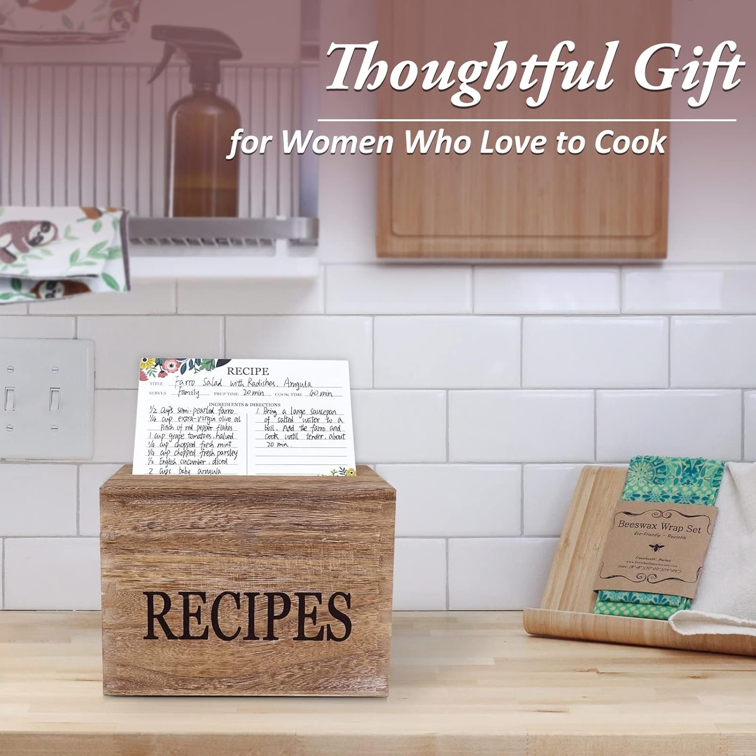 Excellent Gift – Our premium quality wood recipe box is the most thoughtful birthday, wedding, housewarming, Christmas or Mother’s Day gift and write your wishes with our handmade flower greeting card for you.Whether it’s an upcoming holiday or a special occasion, this recipe box will inspire compliments and gratitude for many years to come