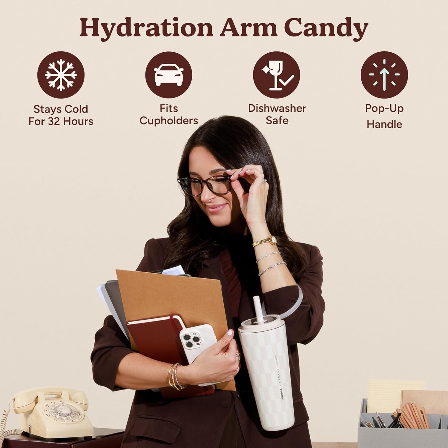 CUPHOLDER FRIENDLY DESIGN: Simplify your on-the-go experience with a tumbler that fits most cupholders. The 32 oz capacity provides ample hydration, while the sleek design ensures it comfortably accompanies you everywhere, making it the perfect travel mug.