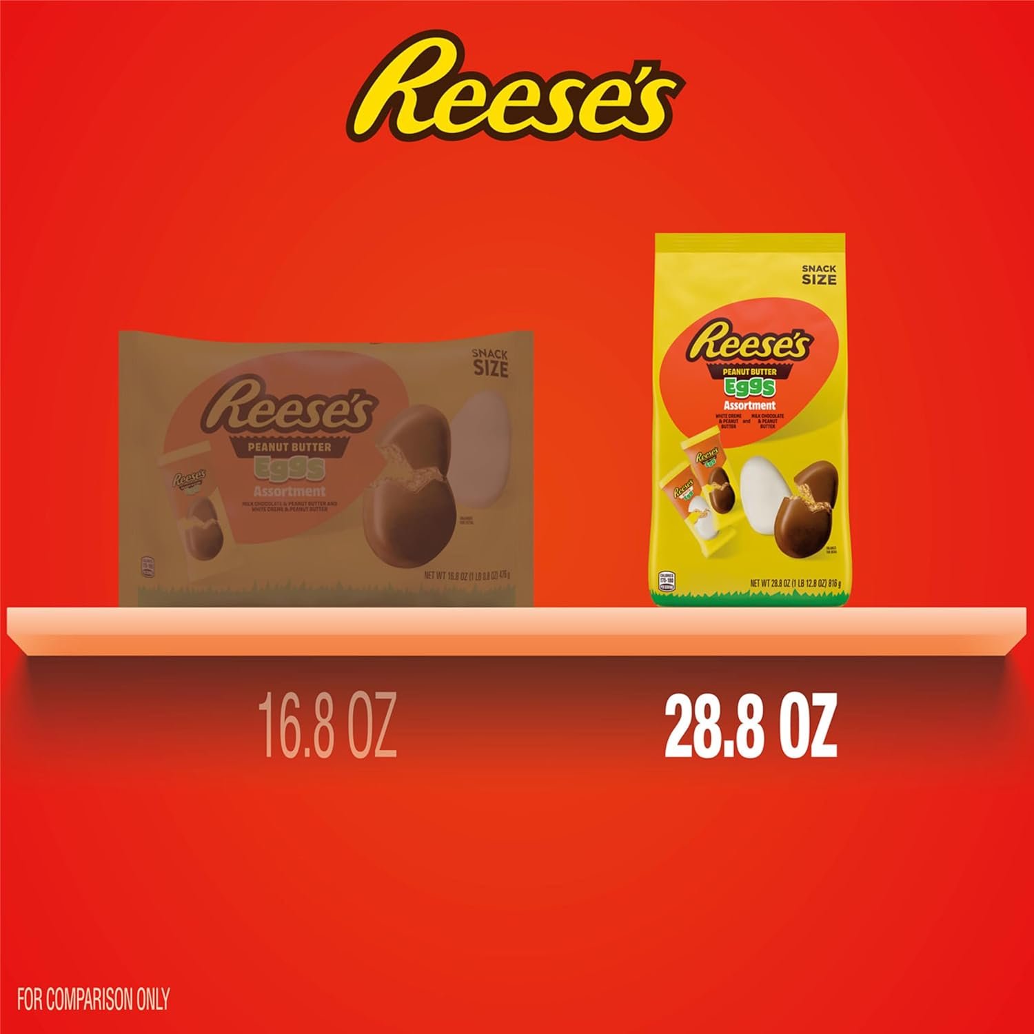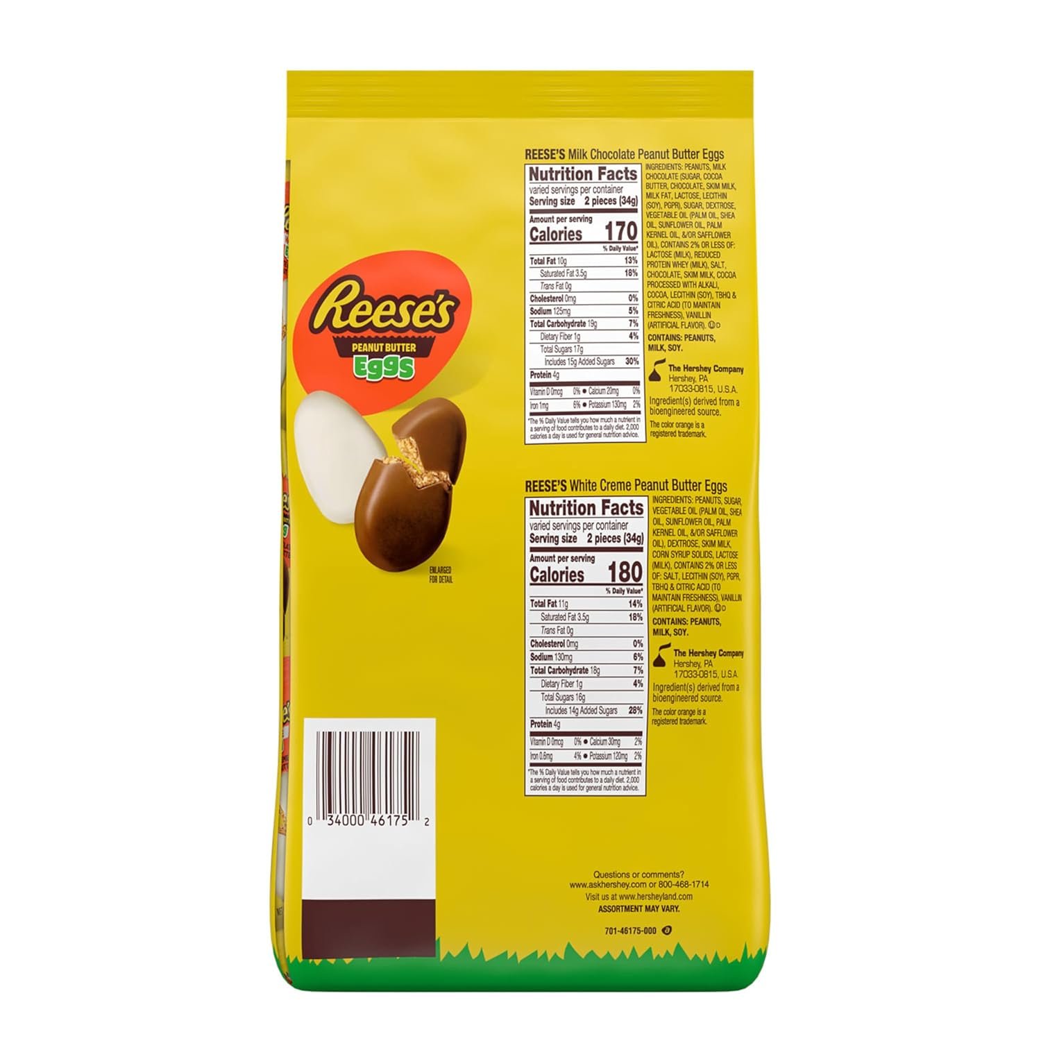 Includes REESE’S Milk Chocolate Snack Size Peanut Butter Eggs and REESE’S White Creme Snack Size Peanut Butter Eggs
