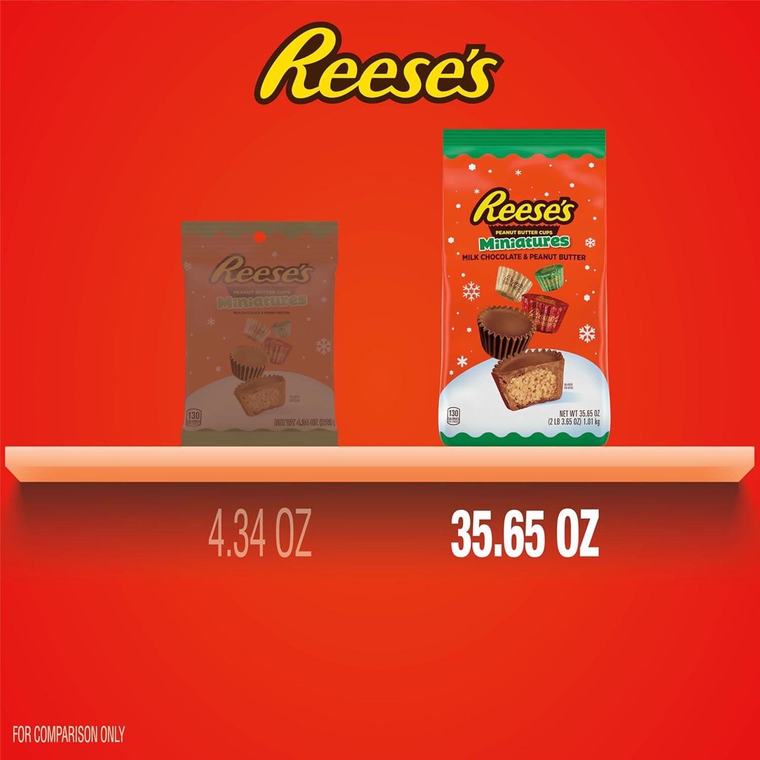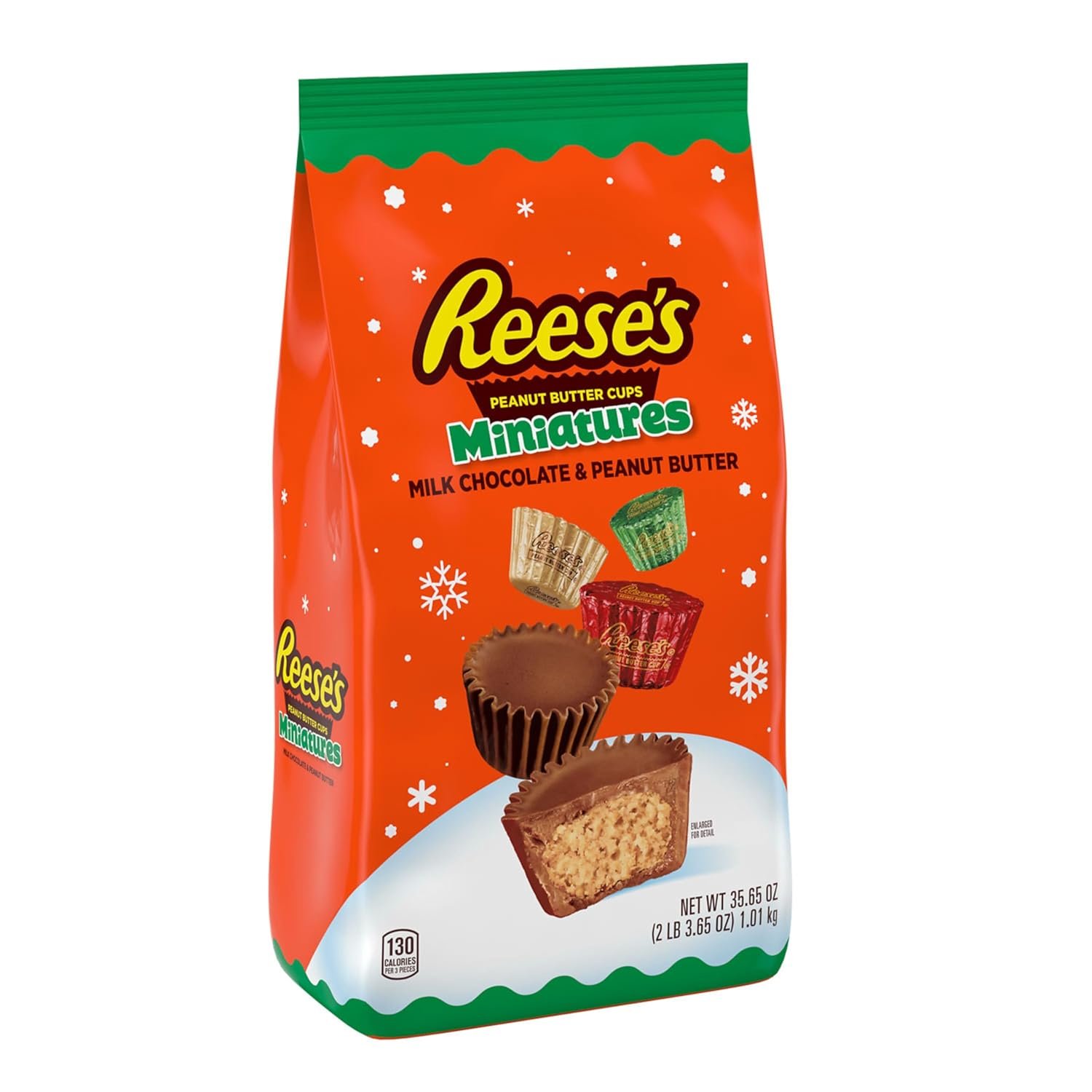 Contains one (1) 35.65-ounce bag of REESE’S Miniatures Milk Chocolate Peanut Butter Cups Candy